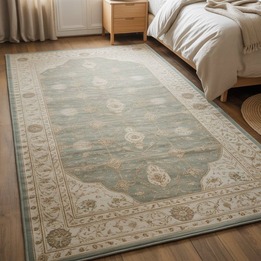 This rug can help improve bedroom comfort while keeping the design calm and balanced. The subtle pattern makes it easier to combine with different bedding styles. Many people choose this option because it creates a peaceful look without drawing too much attention.