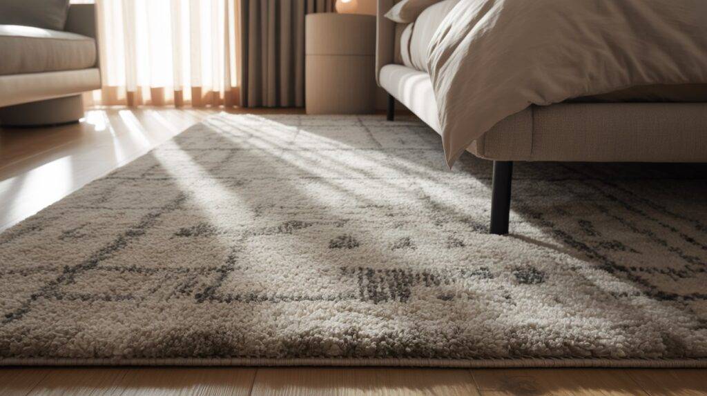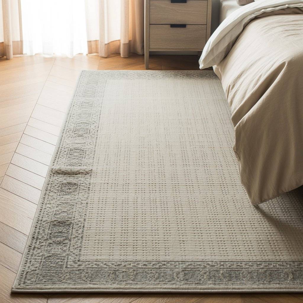Another benefit is easy maintenance. Regular vacuuming is often enough to keep it clean, and the material does not flatten quickly. This makes it helpful for people who want a long-term solution instead of replacing rugs often. The neutral design also fits many bedroom styles, including modern, simple, or traditional interiors.