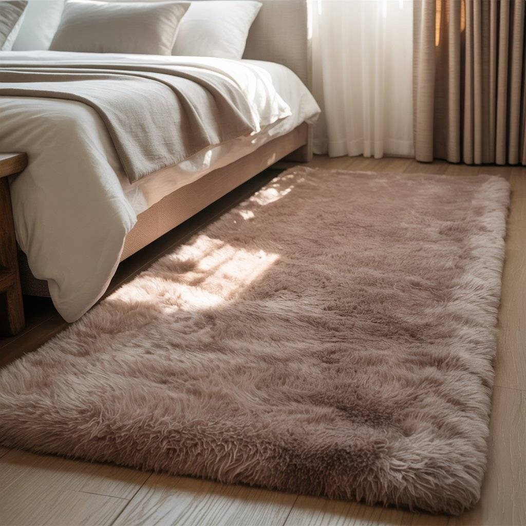 This rug works well in both small and large bedrooms because it adds texture without needing complex decoration. It is also suitable for people who want a cozy atmosphere without adding many extra accessories.