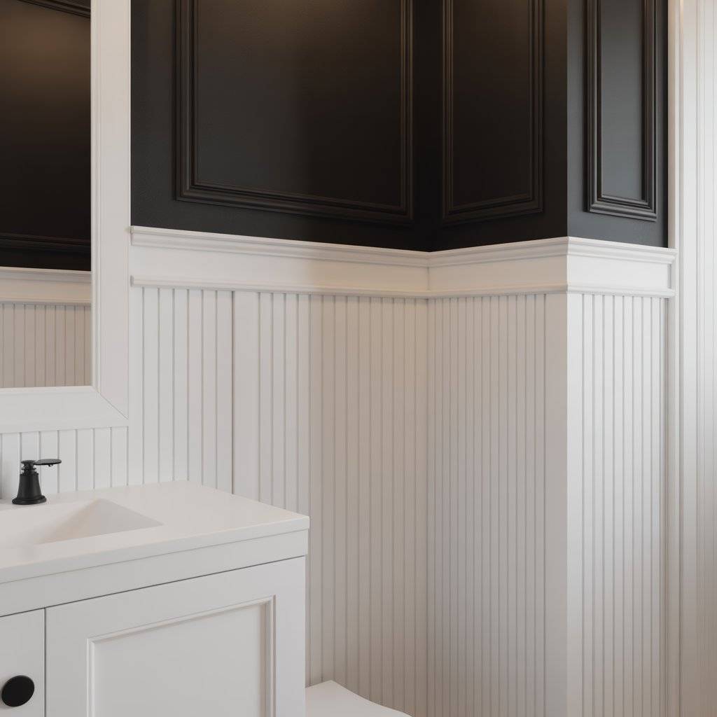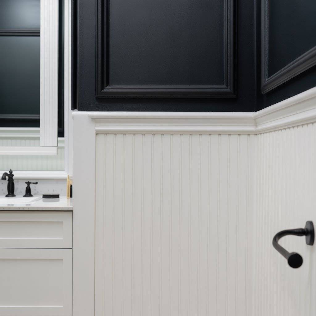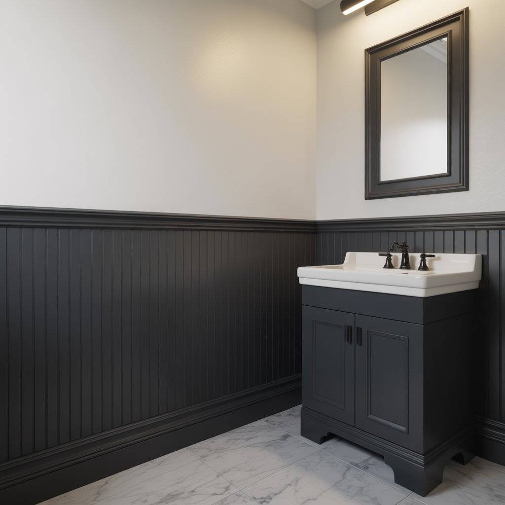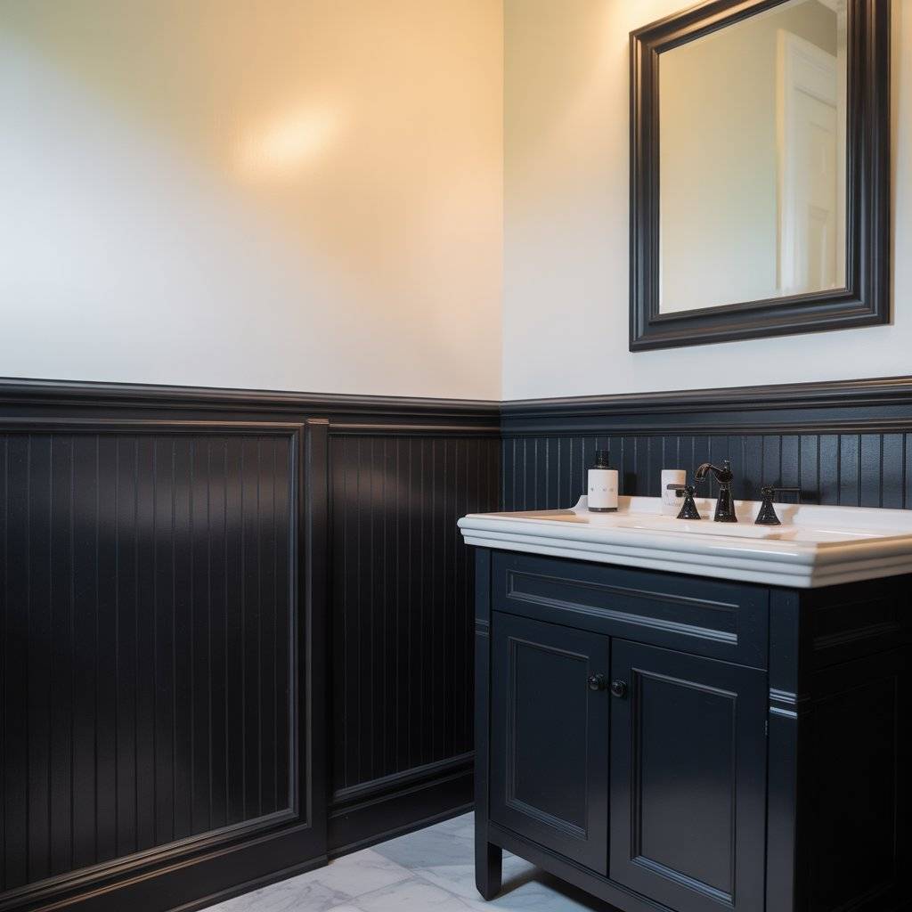 Flip the usual formula. Paint your beadboard or board-and-batten wainscoting black. Then paint the upper walls white. This feels more modern and dramatic than the reverse. The black lower half grounds the room and makes white fixtures pop.