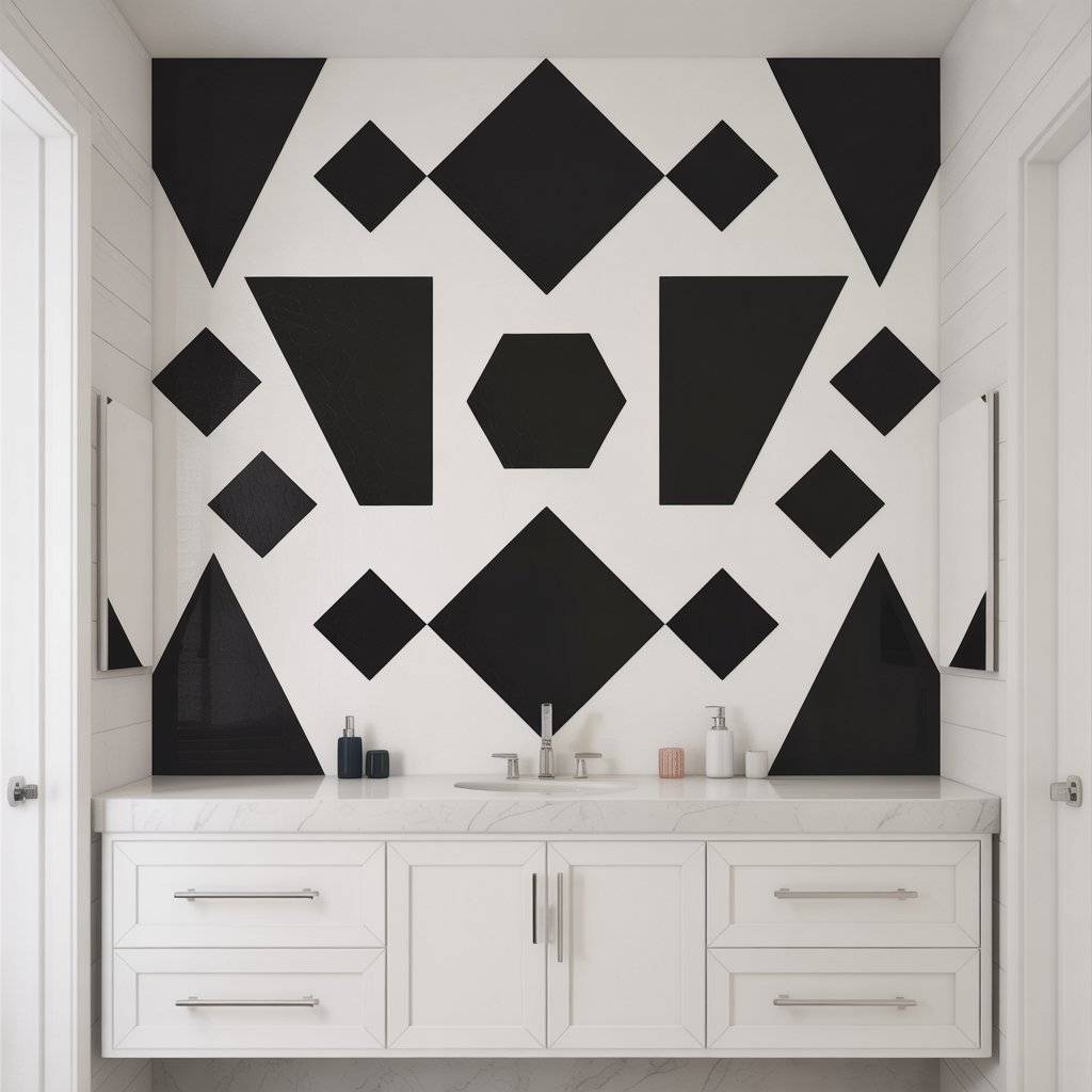 This gives you a custom mural that no one else will have. Keep the shapes limited to one wall, preferably the one behind the toilet or vanity. Use a matte black paint so the shapes don’t reflect light and compete with the white. This is a great weekend project if you enjoy detailed work. It’s also easy to paint over if you change your mind later.