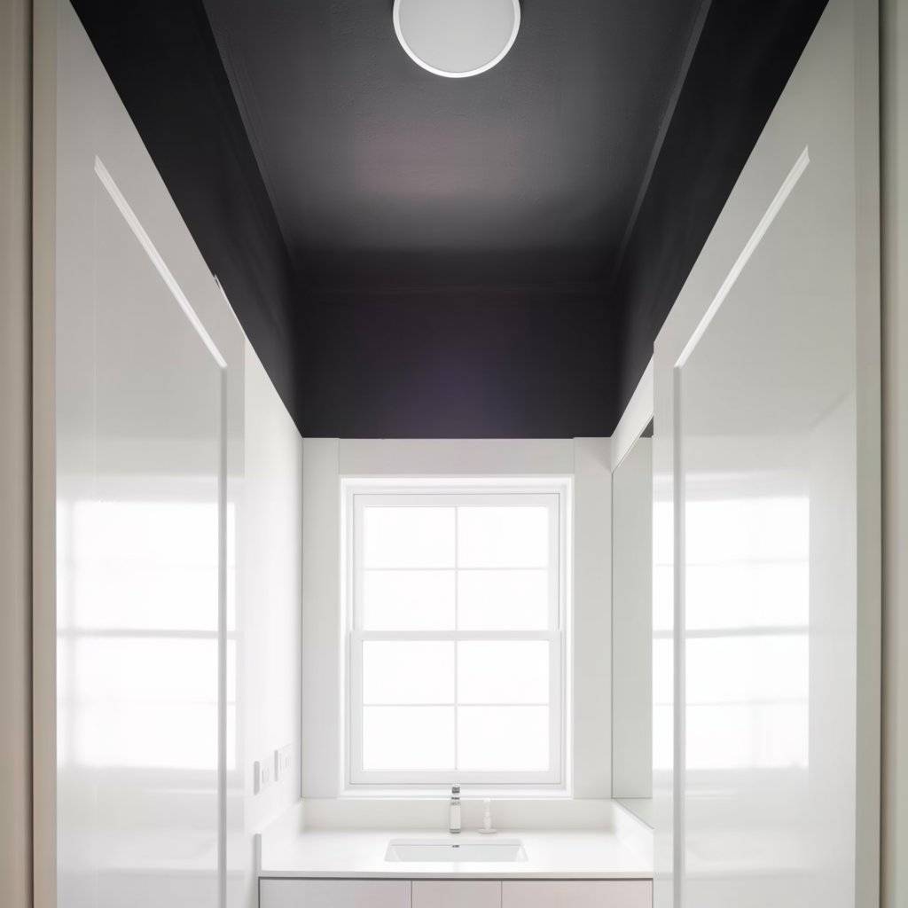 Use a flat black paint on the ceiling so it doesn’t reflect light weirdly. Keep the walls a crisp white with a slight sheen. Add white trim around the window and door. This works especially well in bathrooms with a skylight or a single large window. Try it in a small powder room first.