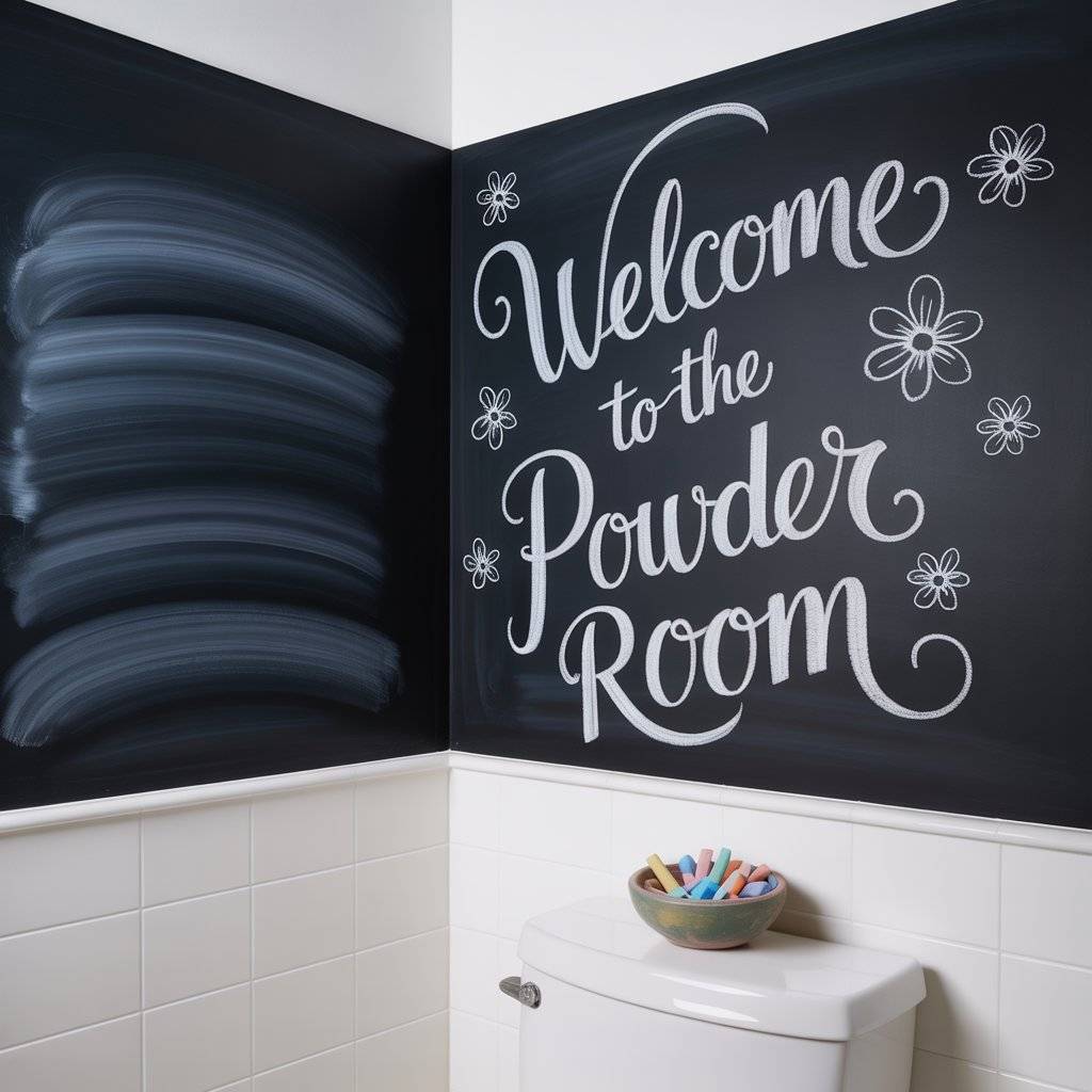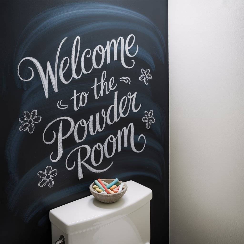 Paint one wall with chalkboard paint. Keep the other walls white. Now you have a wall you can actually draw on. Write notes, draw doodles, or let your kids go crazy. When guests come over, write “Welcome to the powder room” or draw a little flower.