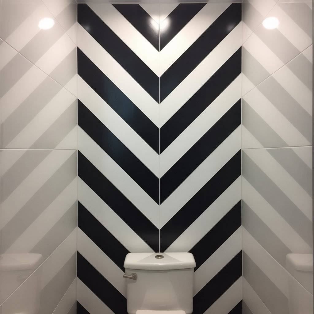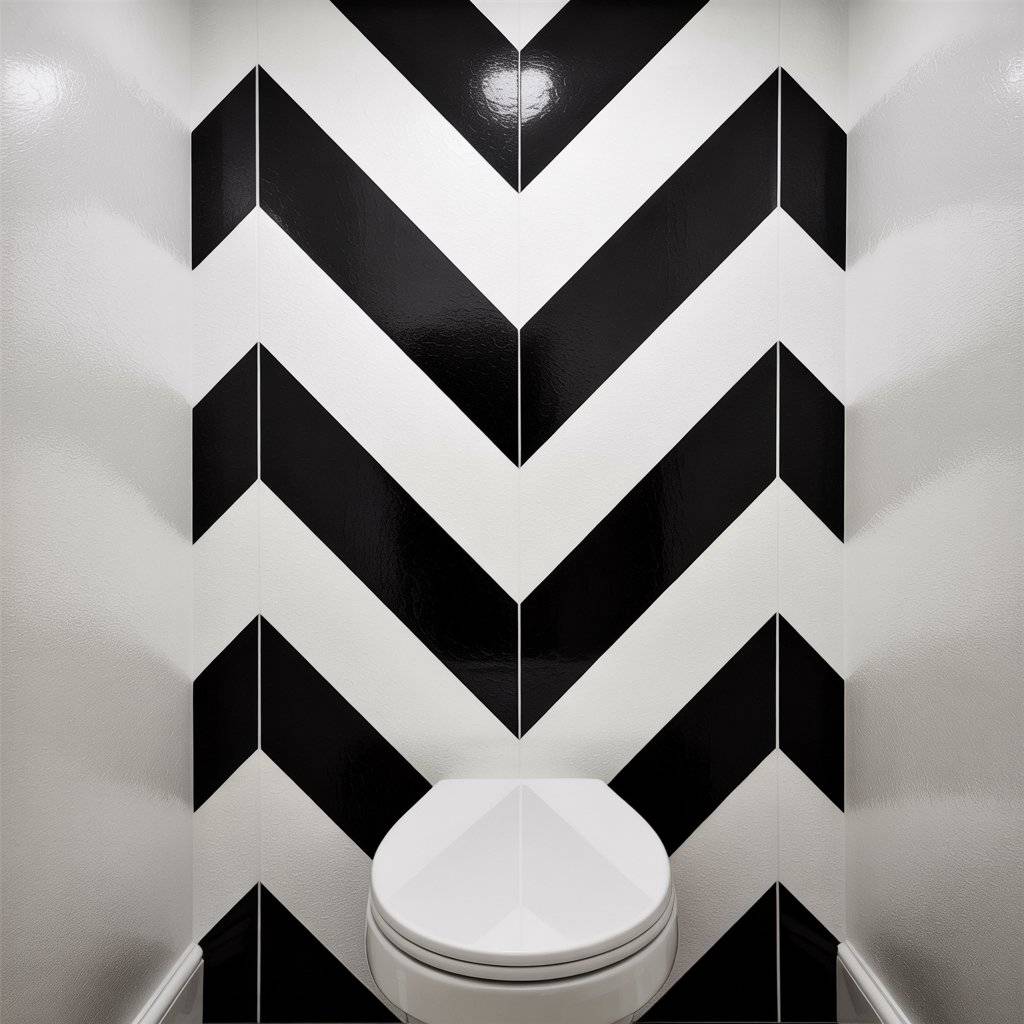 Chevron patterns are like stripes but with a zigzag. They add movement and energy to a bathroom. You paint alternating black and white V-shapes across the wall. This is a weekend project because you’ll need a level, a protractor, and a lot of painter’s tape. But the result is stunning.