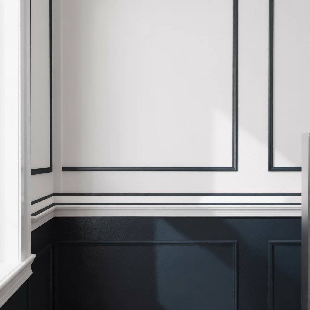 Use a level to draw a straight line all the way around the room. Paint above the line white, below the line black. The dark lower half hides dirt and scuffs from wet floors. The white upper half keeps the room bright. Add a thin strip of black trim at the dividing line to make it look intentional. This is a super beginner-friendly project.