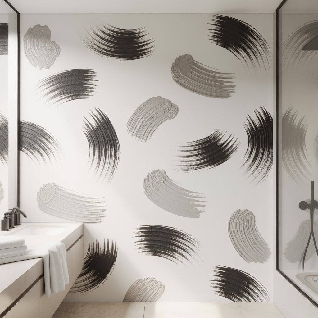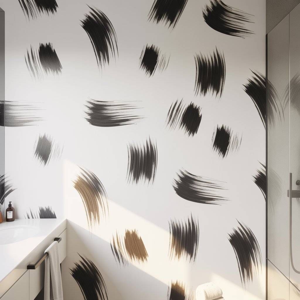 This one is artsy and fun. Start with a white wall. Then take a dry brush, dip it in black paint, and wipe most of it off on a paper towel. Lightly drag or dab the brush across the wall in random directions. You’re not making a pattern. You’re making a soft, textured, slightly messy look that feels like abstract art.