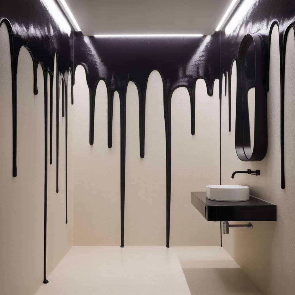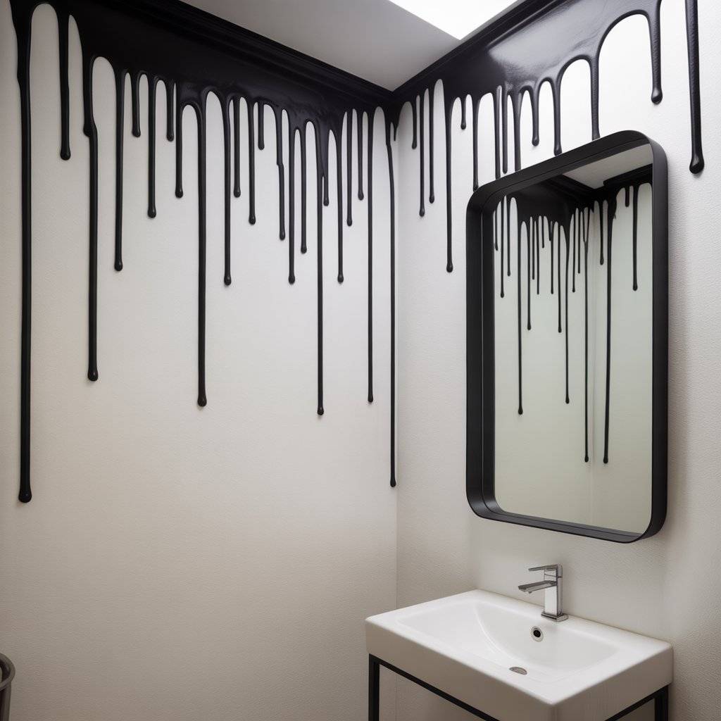Let it run naturally like melting wax. This creates a moody, artistic look that feels like a gallery. It works best in a half-bath or a bathroom that doesn’t get a lot of humidity (so the drips don’t run more over time). Seal it with a clear matte topcoat.