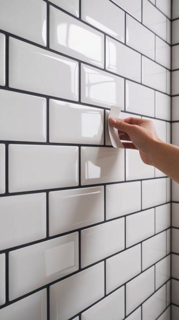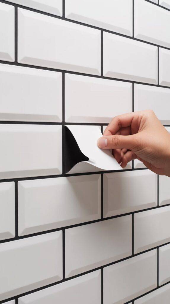 These are thick, self-adhesive vinyl tiles designed to look like real ceramic subway tile  complete with the black grout lines that give that modern, high-contrast look. One reviewer said they look realistic from standing distance and stick firmly with no bubbles.