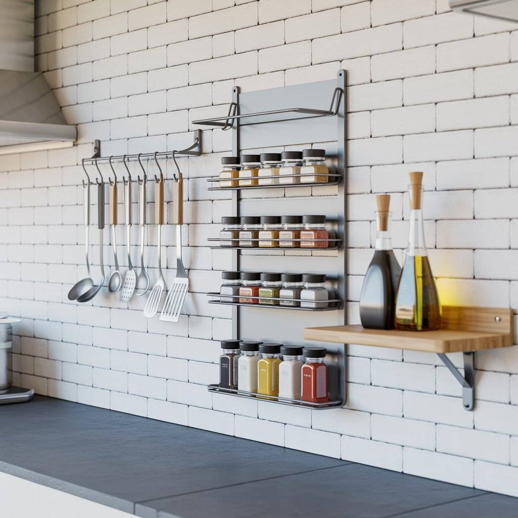 When floor space is tight, think upward. Install open shelving on walls, hang a pegboard for utensils, or add a magnetic strip for knives. These solutions keep your counters clear and your tools within reach without taking up any floor area.