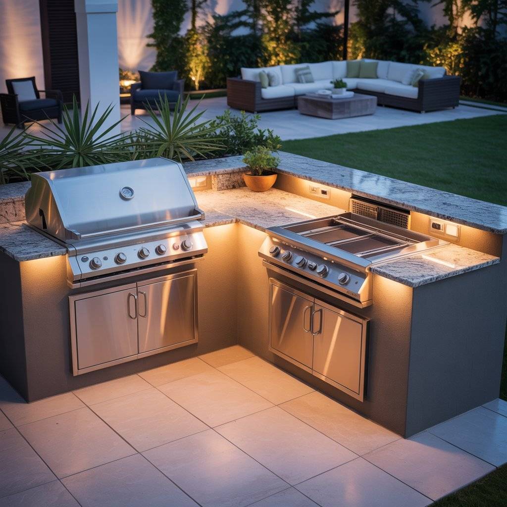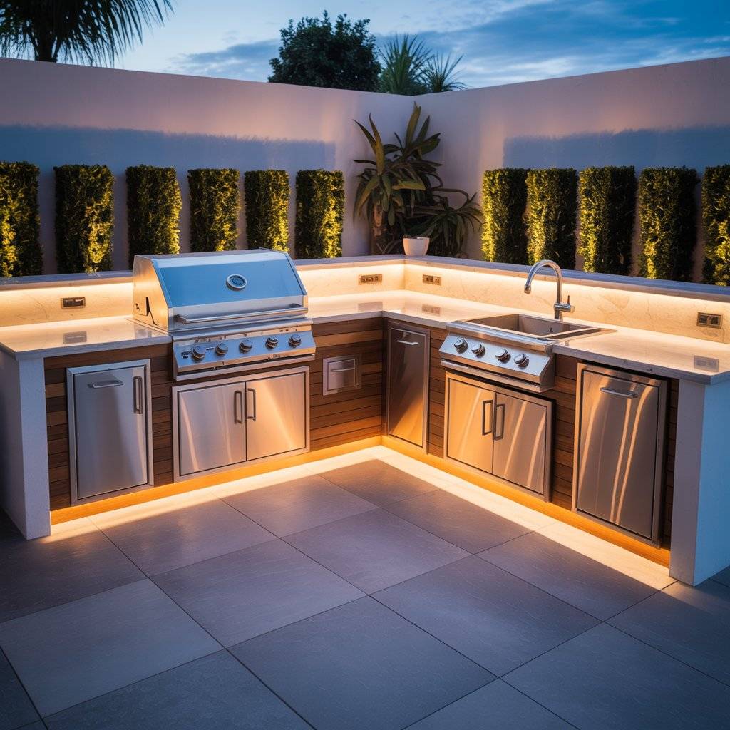 If you have a corner to work with, an L-shaped kitchen is a great choice. It uses two walls to create separate zones one leg for the grill and cooking, the other for prep and serving. This setup frees up the rest of your patio for seating or just breathing room.