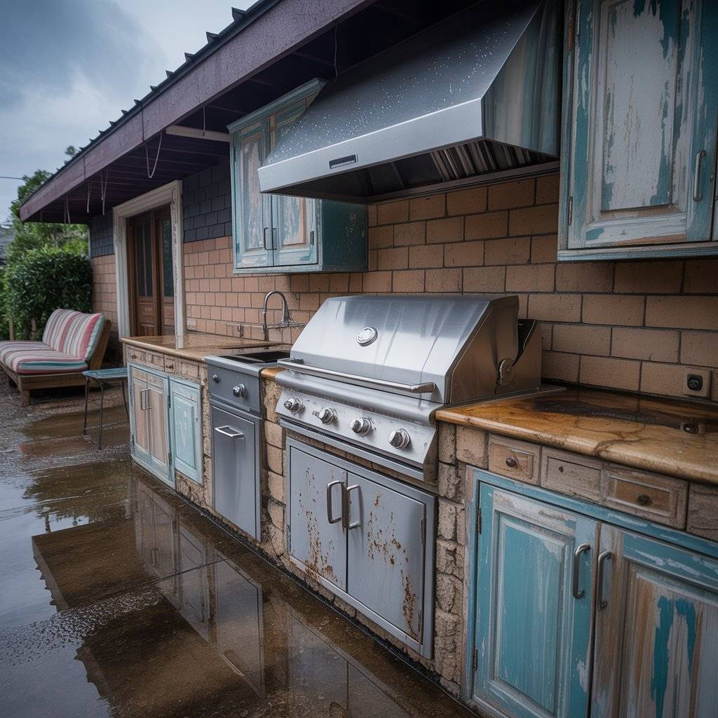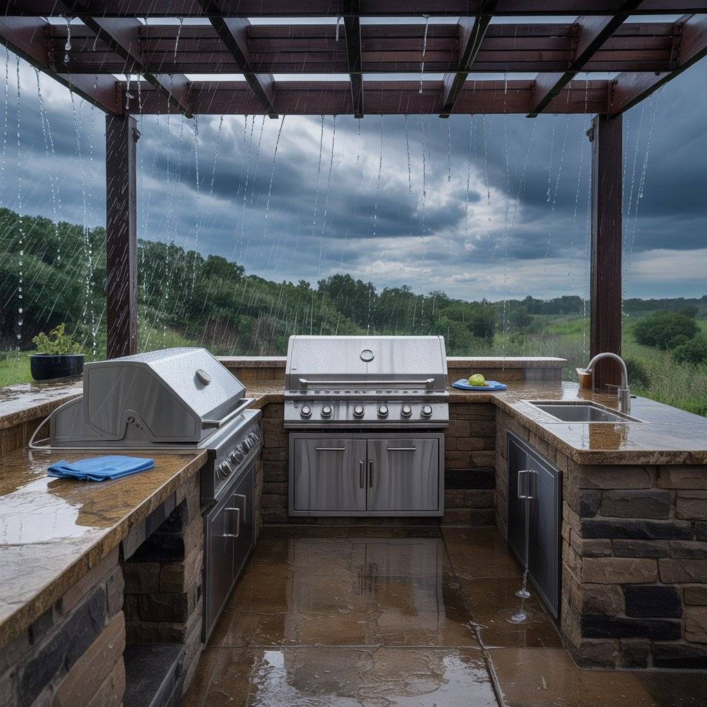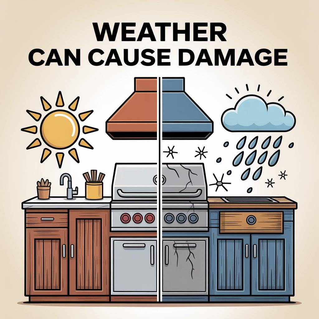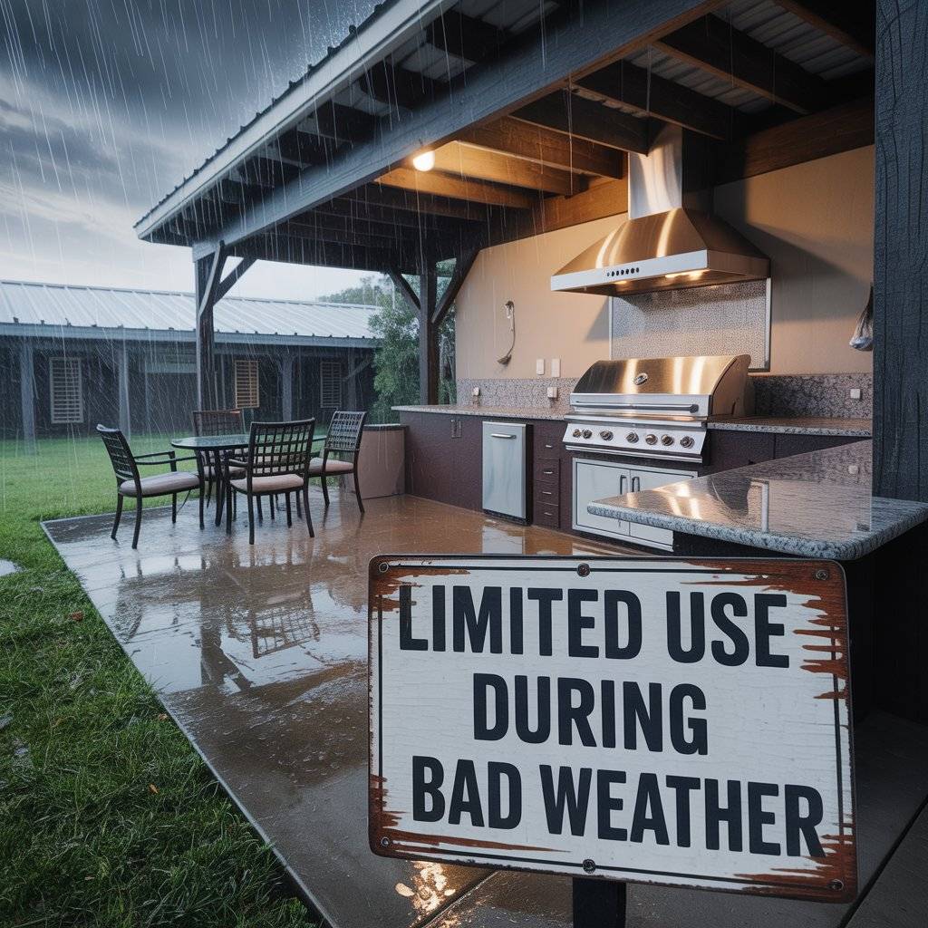 Outdoor kitchens stay outside all the time, which means they face sun, rain, wind, and dust. Over time, weather can slowly damage surfaces and equipment. Strong sunlight can fade colors, while rain can cause rust or stains. Wood materials may crack, and metal parts may wear out faster than expected.