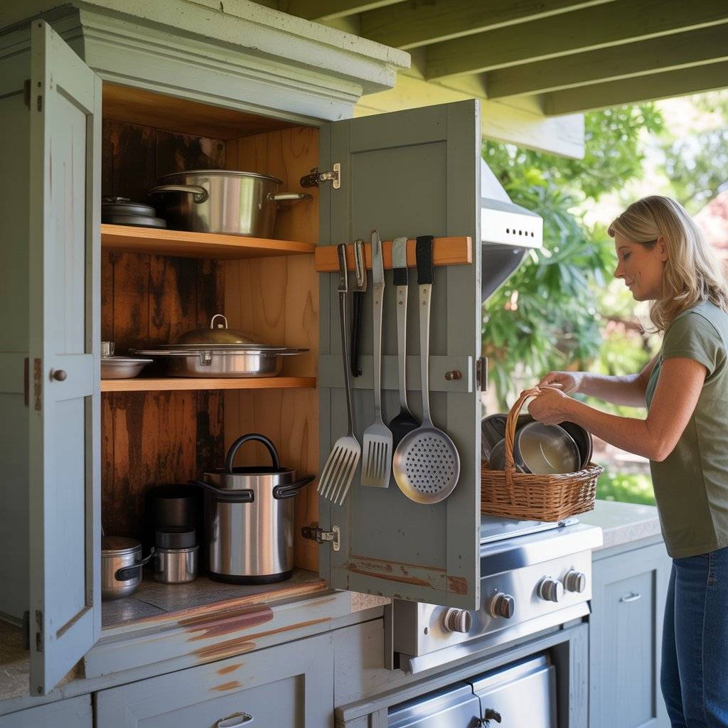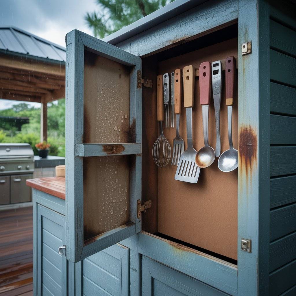 Storage in an outdoor kitchen is not always as reliable as indoor storage. Because the space is exposed to weather changes, humidity can affect items kept in cabinets. Utensils, cookware, and other tools may not stay in perfect condition if moisture enters the storage area.
