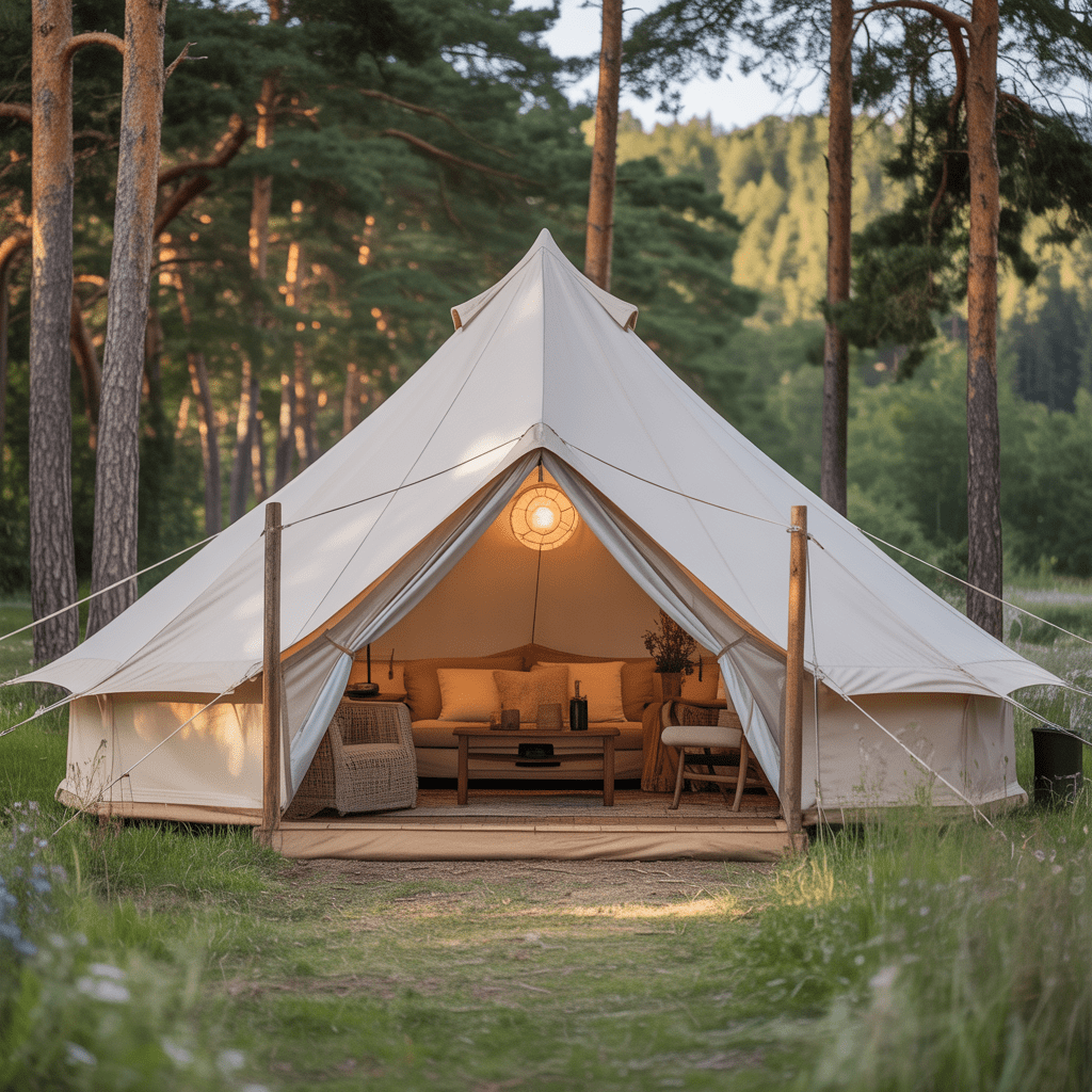 15. Eco Canvas Glamping Tents (Luxury & Comfort in Nature)