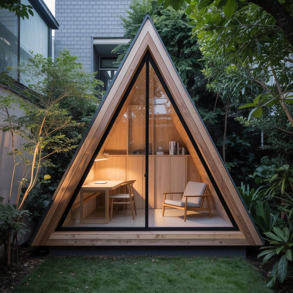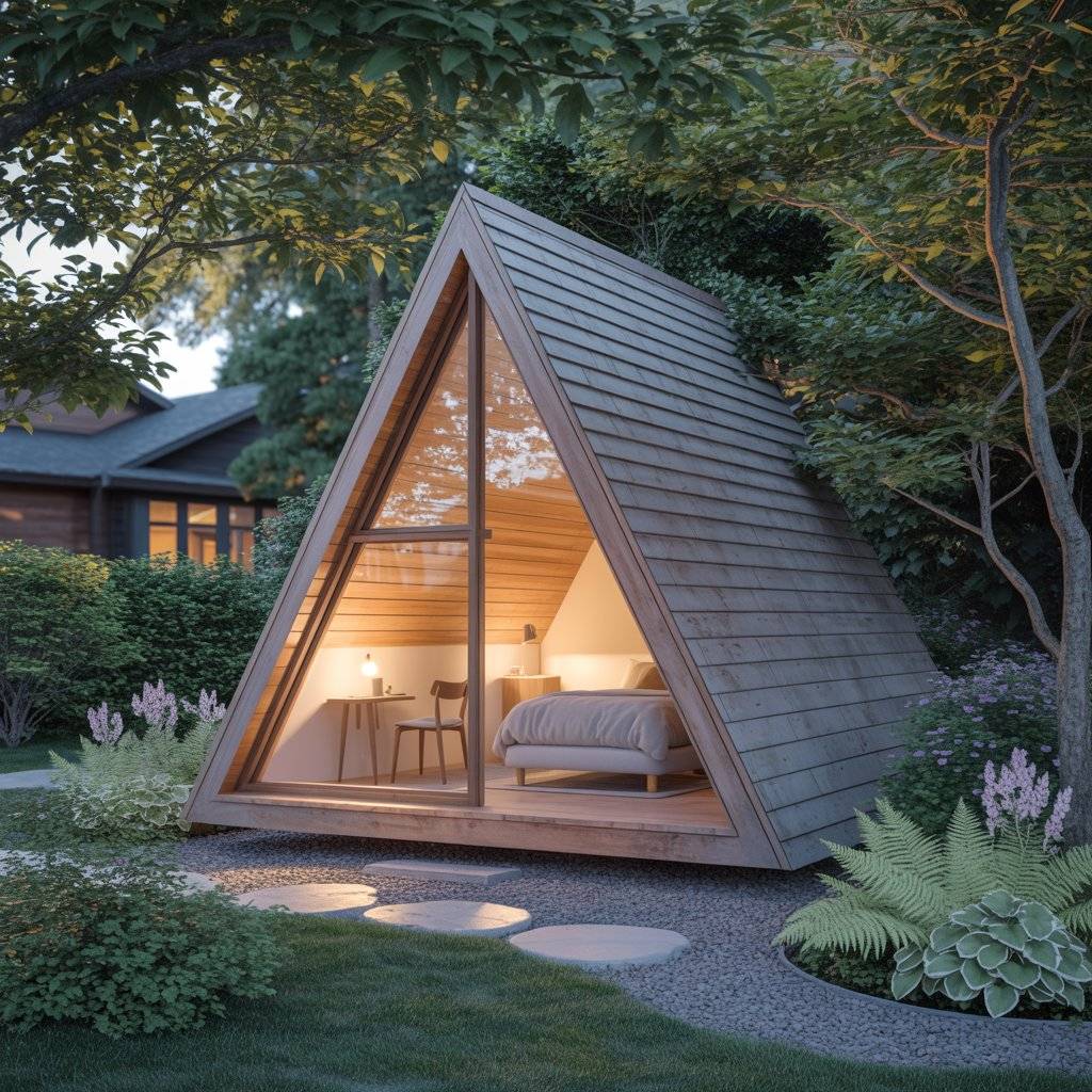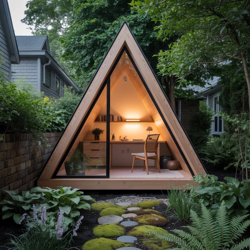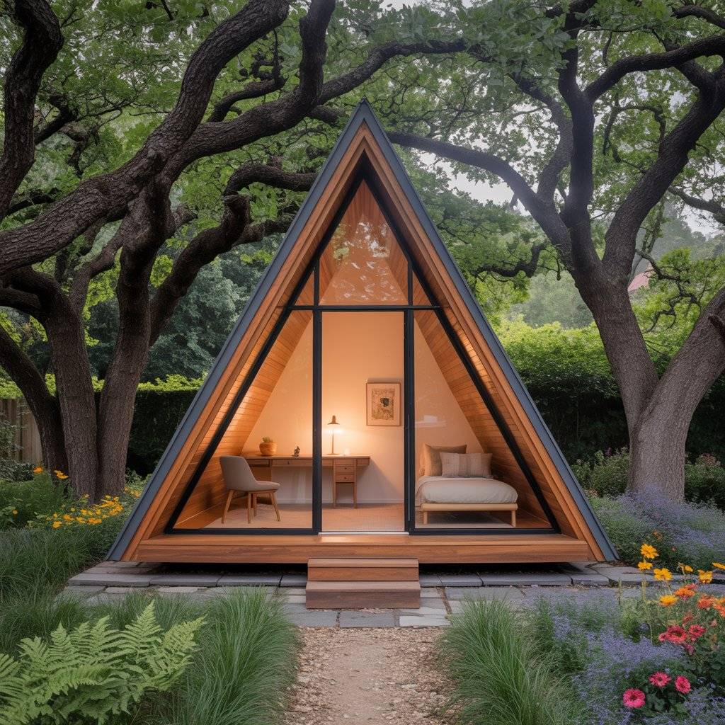 A garden A-frame sanctuary offers quiet without isolation. These small structures are often built behind a main home or within a shared green space. The key is separation. Once inside, the outside world fades quickly.
