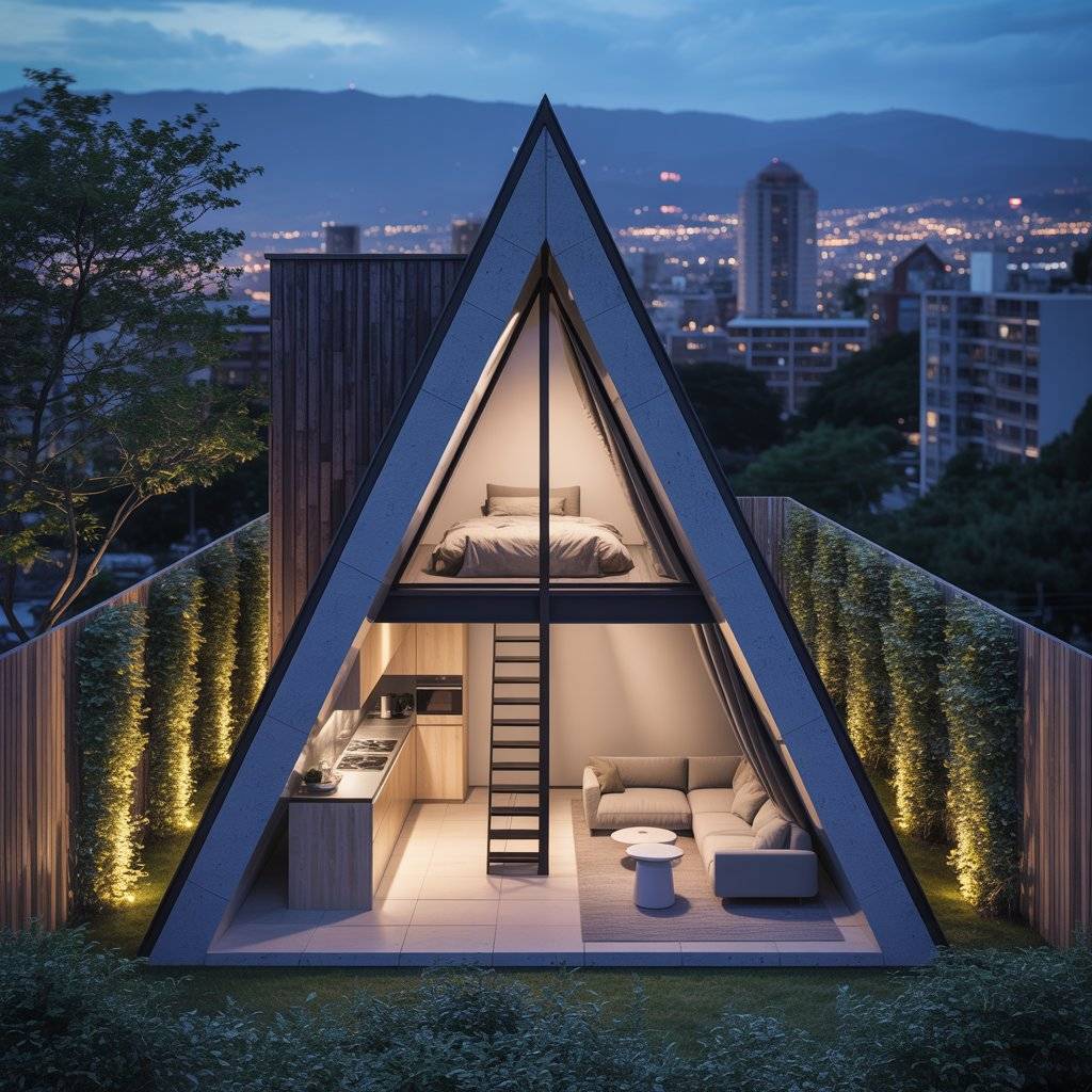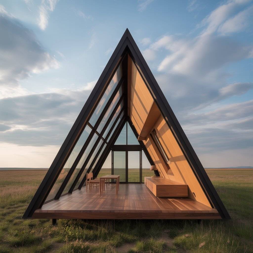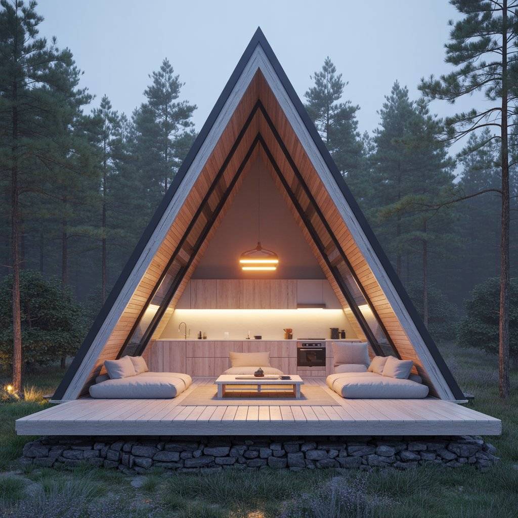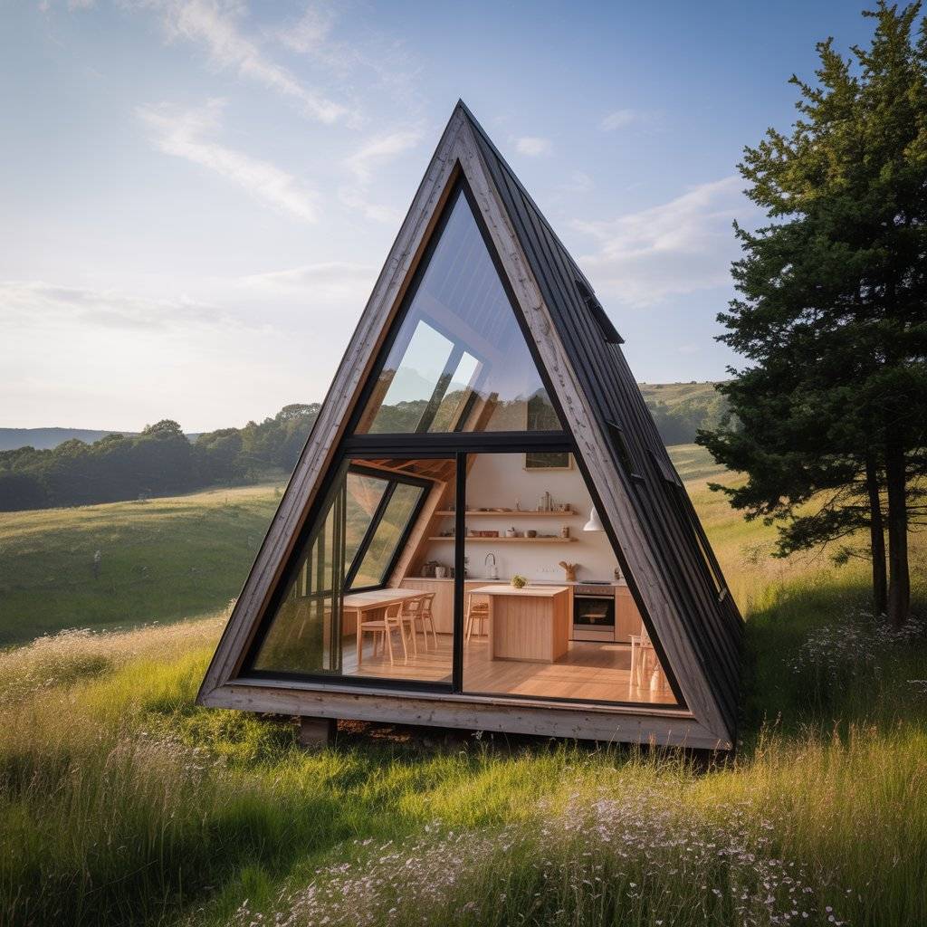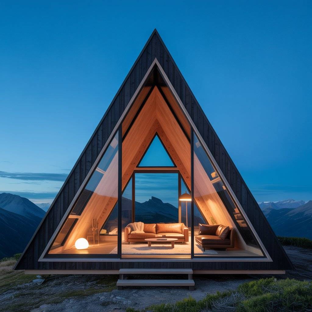 A-frame retreats built on narrow plots often surprise people. When designed well, they feel private and spacious despite limited width. The steep roof allows vertical space to do the work.