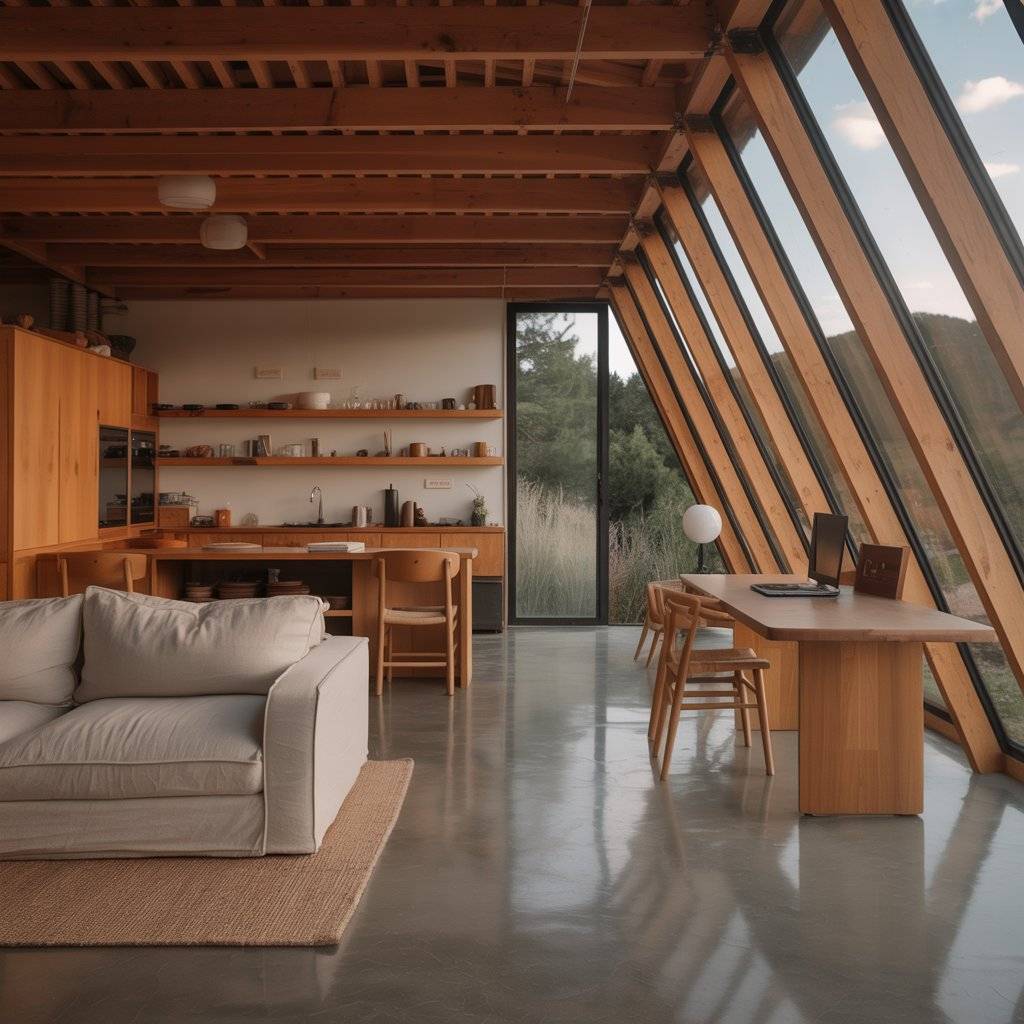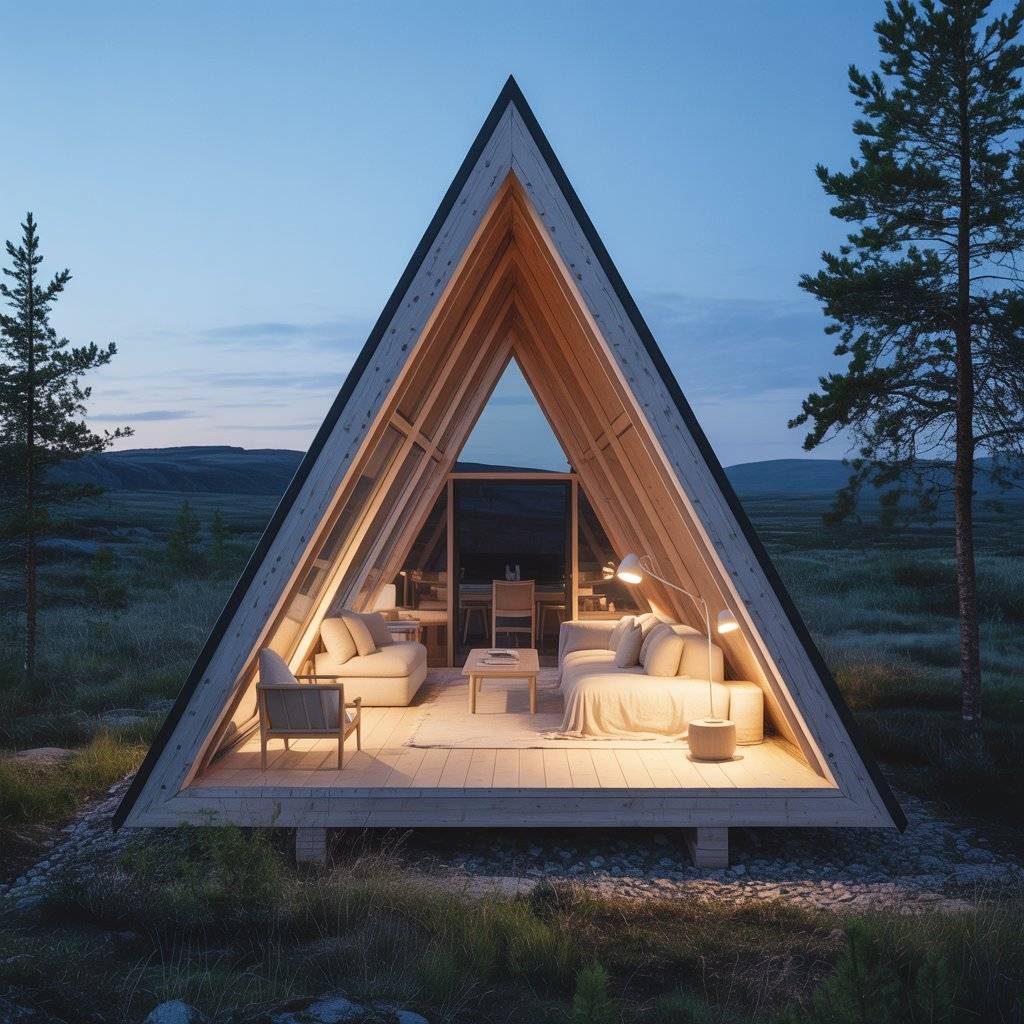 In northern regions, A-frame retreats are often designed around long daylight hours. Windows are positioned to capture low-angle light without overheating the space. Rooflines help guide light deeper inside.