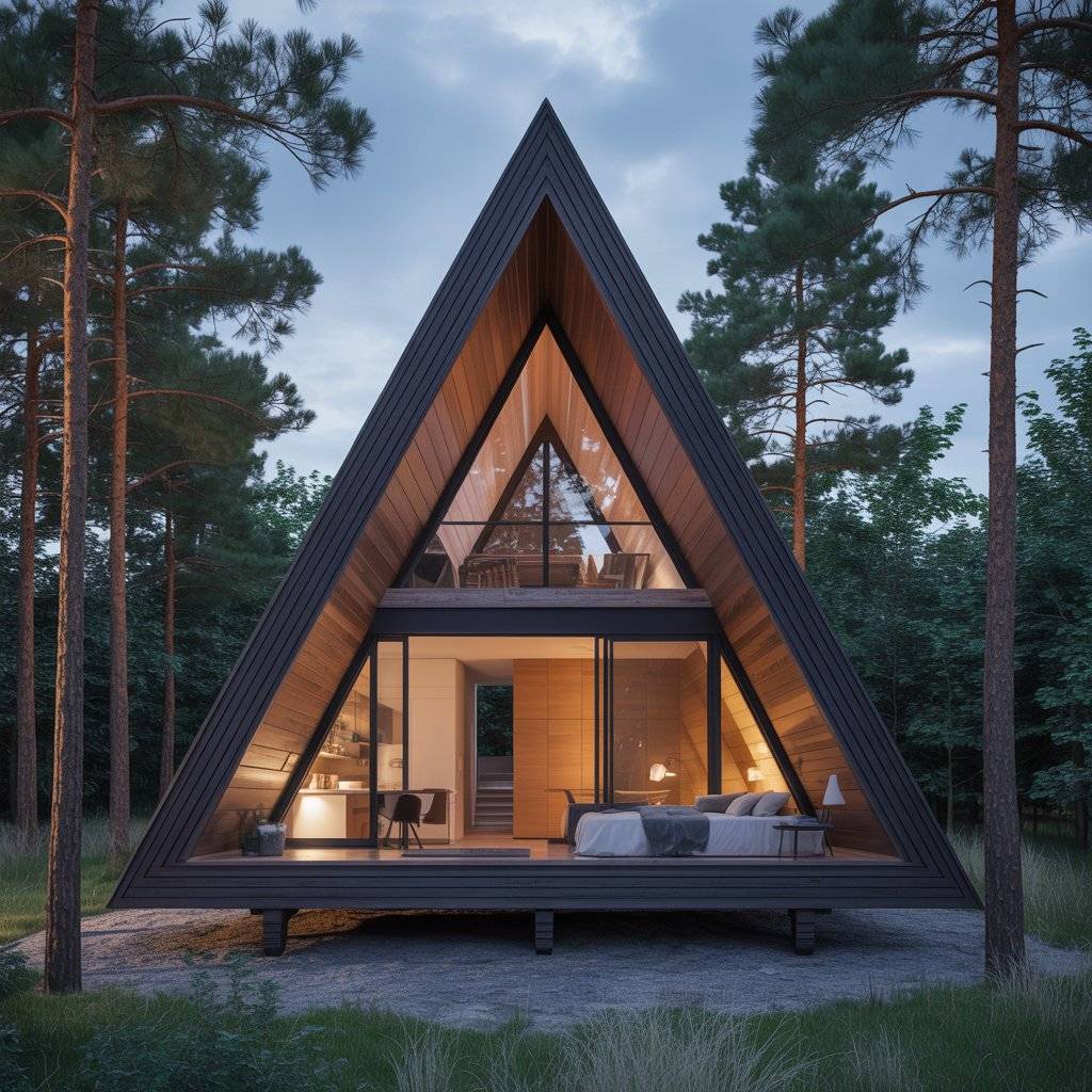 1. Forest-Set Minimalist A-Frame Cabin