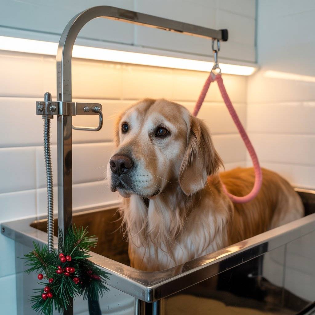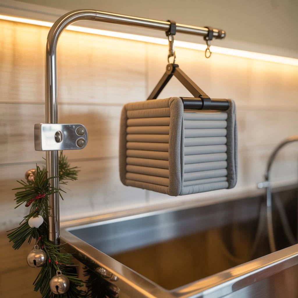 During the holidays, I tie a small, lightweight garland or ribbon near the post just decorative, nothing obstructing the arm. This setup keeps pets safe and the bath smooth, while adding a subtle festive touch. An adjustable grooming arm is practical, functional, and instantly makes the wash station feel professional.