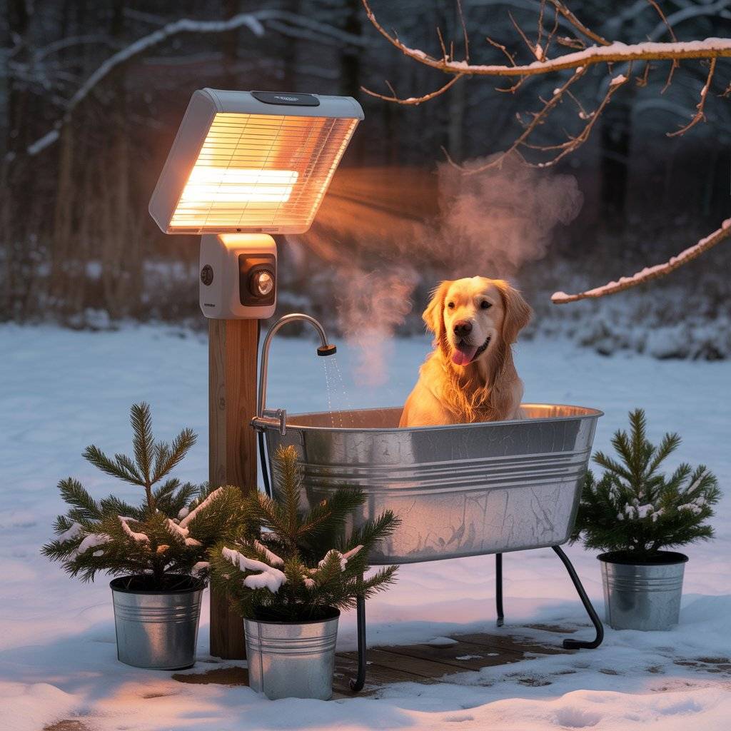 For very cold climates, I installed a small outdoor pet-safe heater near the wash area. It keeps pets warm and calm during baths without being in their way or creating safety hazards.