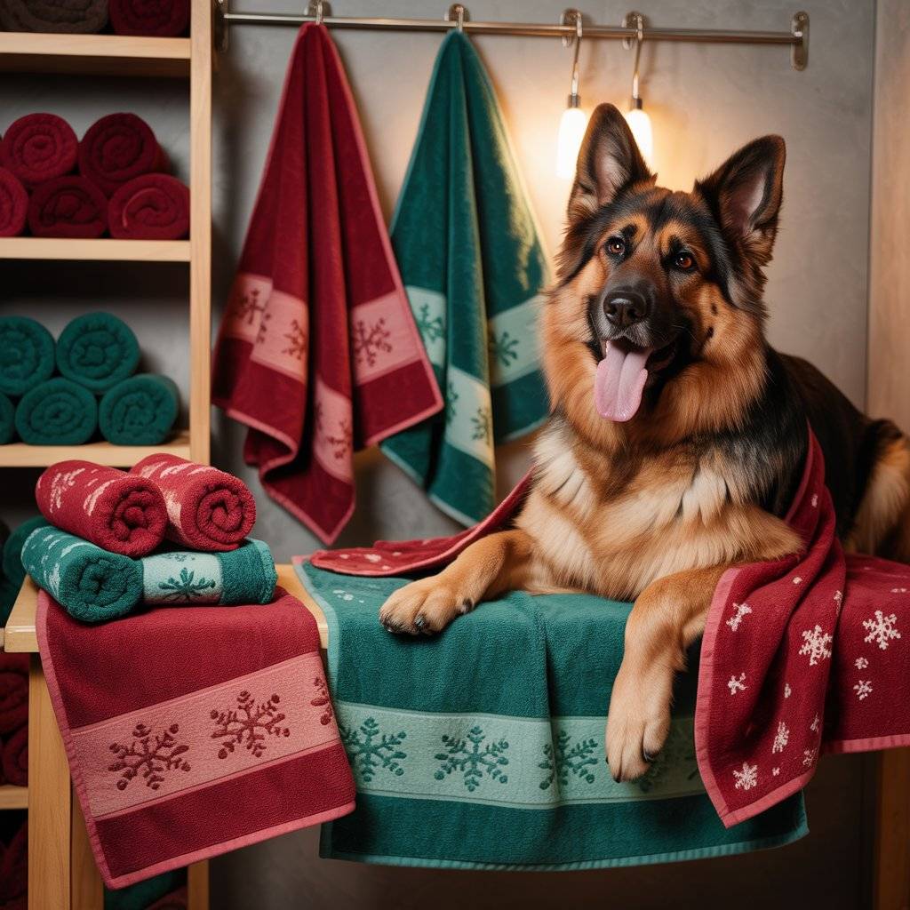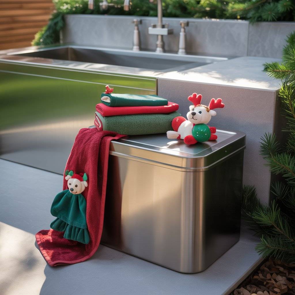 I always keep oversized, absorbent towels at the wash station. For Christmas, I like towels with subtle holiday colors or patterns red, green, or soft winter prints. They’re practical for drying wet fur, but they also make the station feel festive.