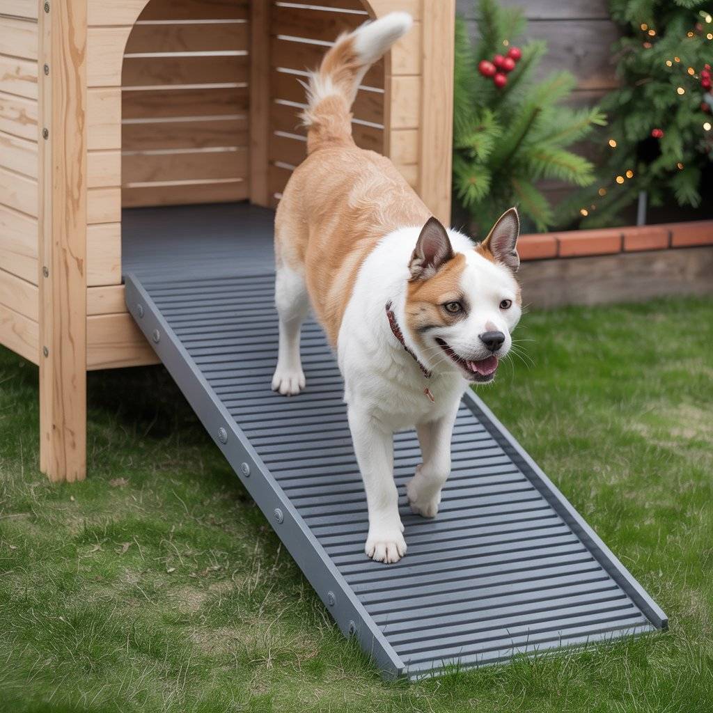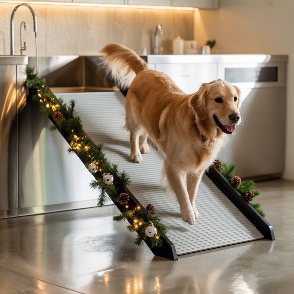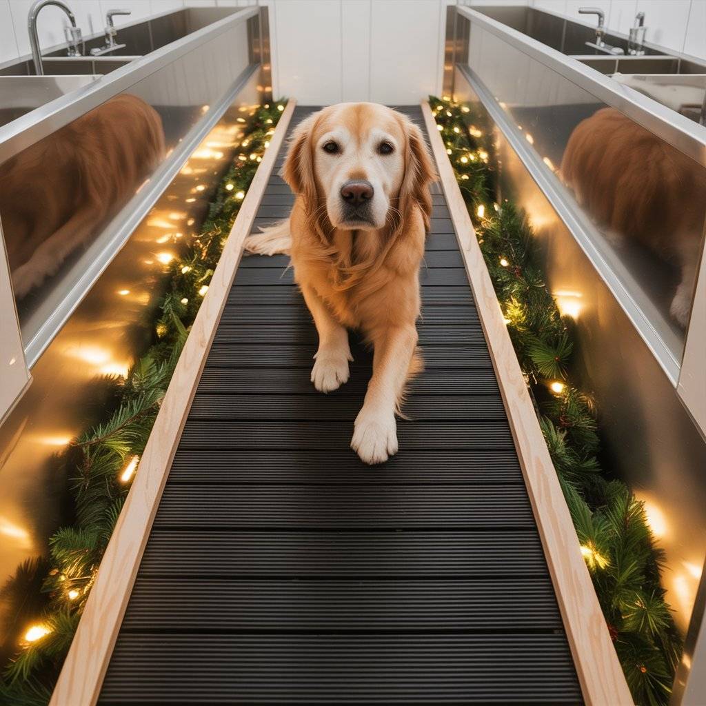 During Christmas, I add a few waterproof, decorative elements along the side nothing in the way, just subtle holiday charm. A ramp like this keeps pets calm, improves safety, and adds a functional, luxury touch to the wash station.