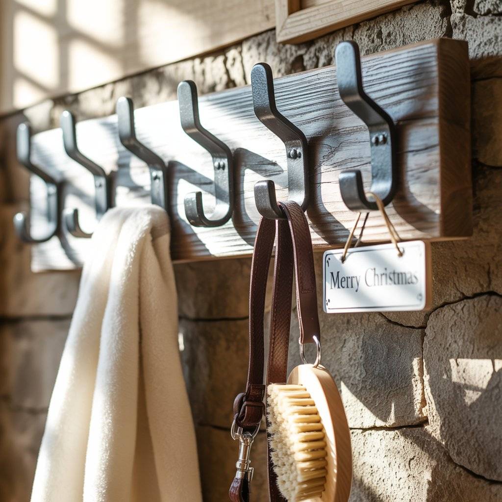 During the holidays, I switch some hooks for small festive decorations or seasonal towels. These simple hooks keep the station organized and practical while adding a touch of Christmas charm. It’s a small detail with a big impact on both function and visual appeal.