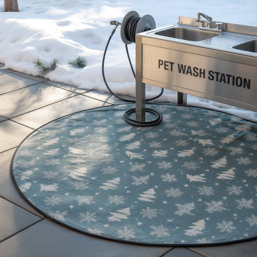 For Christmas, I place waterproof mats in subtle holiday colors or patterns. Heated flooring not only makes the space functional but also adds a sense of care and comfort that pets notice. Small upgrades like this transform a simple backyard wash into a luxurious, cozy experience for both pets and owners.