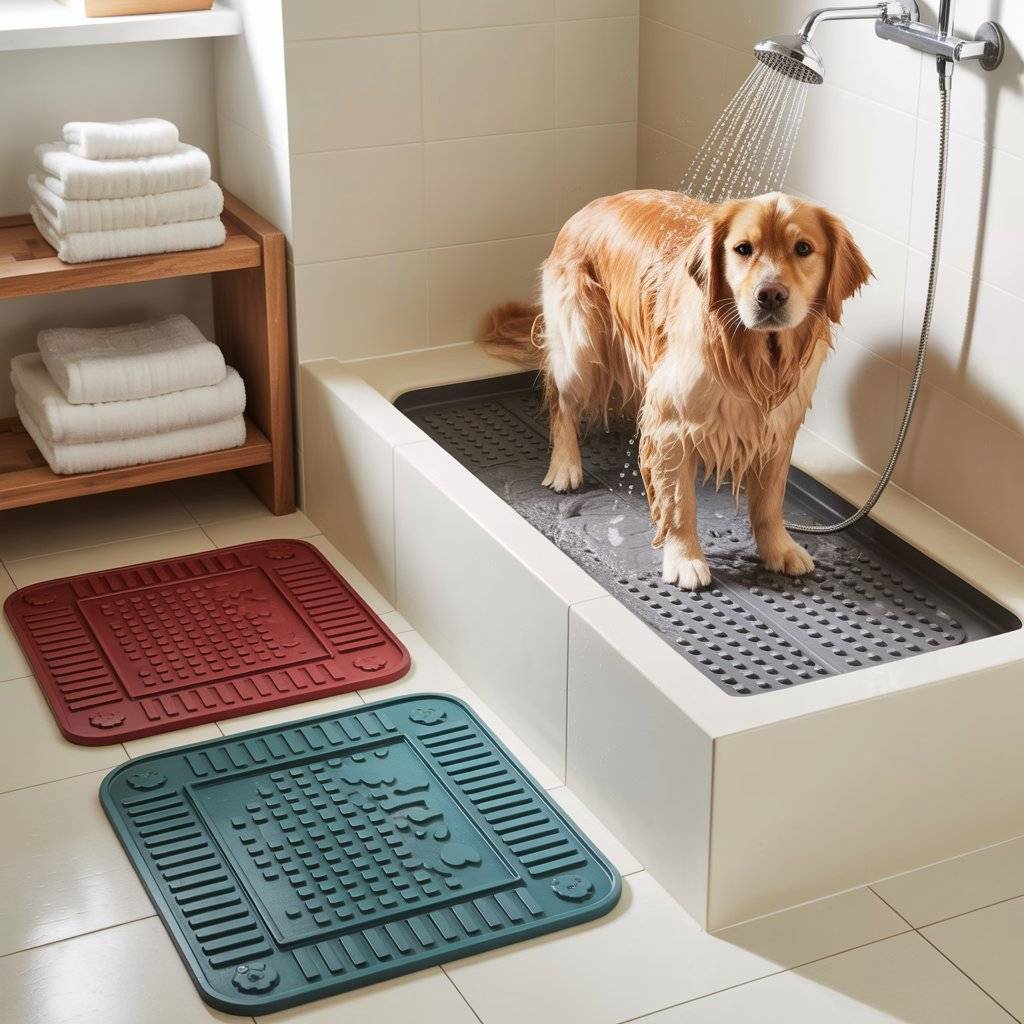 I set up a wide rinse area with quick-drain flooring so water doesn’t pool and pets don’t slip. The space is big enough for dogs or multiple cats, making washing easier and faster.