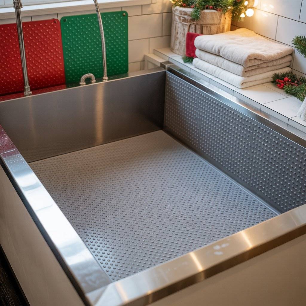 For Christmas, the goal is to bring happens and practical touches that make bath time easier and more enjoyable for both you and your pets. Think heated hoses, anti-slip platforms, waterproof storage for shampoos and brushes, and cozy holiday elements like pine garlands or winter-themed towels.