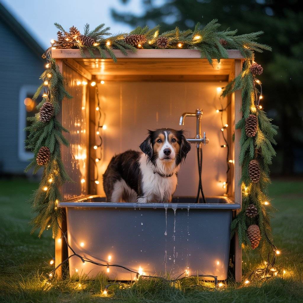 I combine the lights with small garlands or pinecones to tie in the Christmas theme. This simple touch makes the wash station feel luxurious and holiday-ready while keeping it functional and safe. Pets are happier, and the whole backyard feels like a curated, festive space.