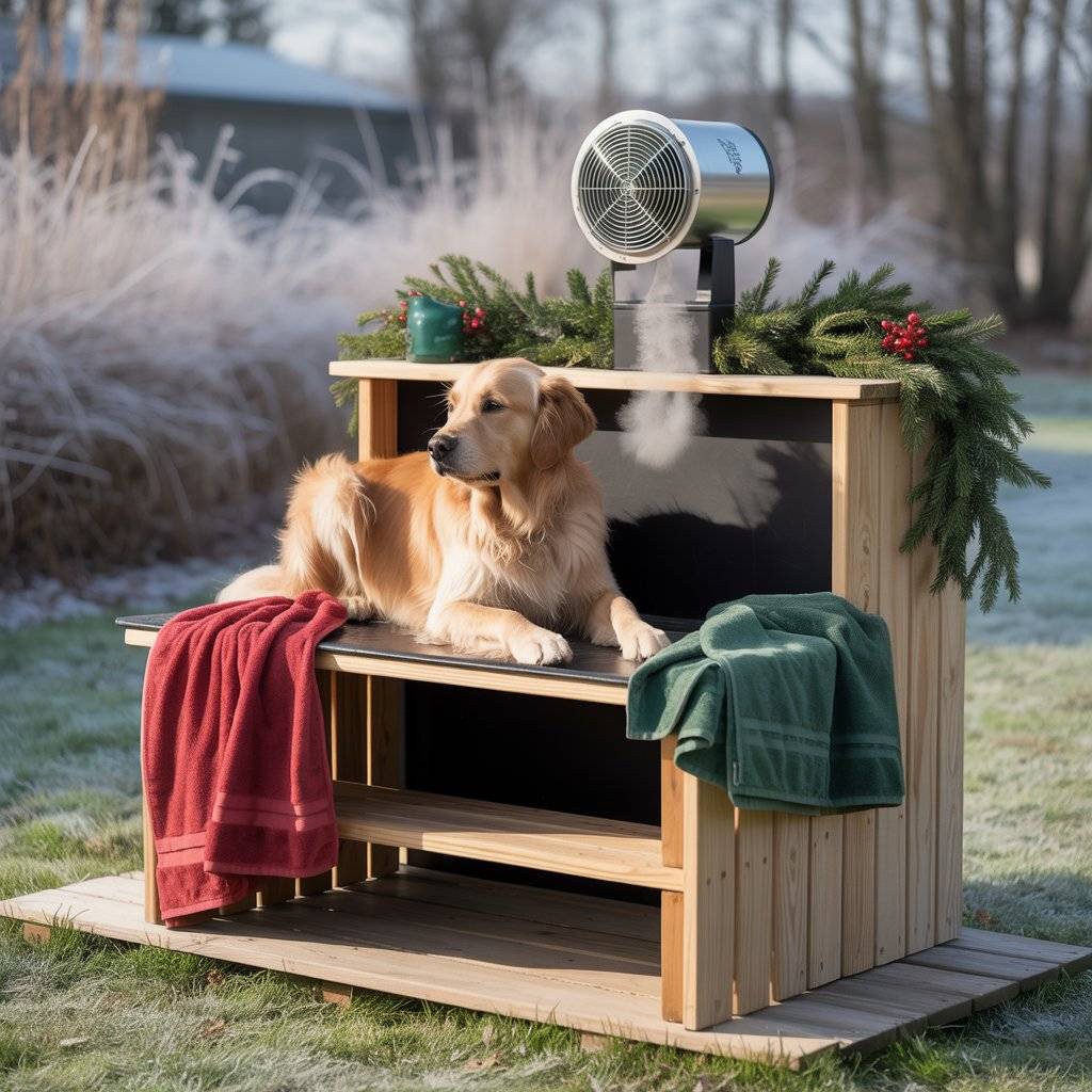 After a bath, wet pets need to be dried quickly, especially in winter. I added a small outdoor drying station with a heated air blower that’s gentle enough for dogs and cats. It saves time and prevents them from shivering.