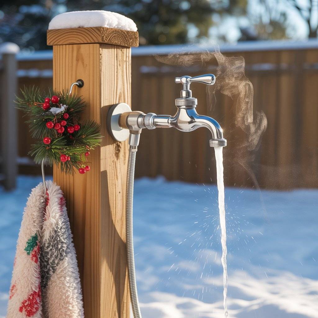 Around Christmas, I wrap a subtle string of waterproof LED lights around the shower post. The station still feels functional, but it also has a little festive glow. A simple upgrade like this makes a huge difference in both convenience and comfort.