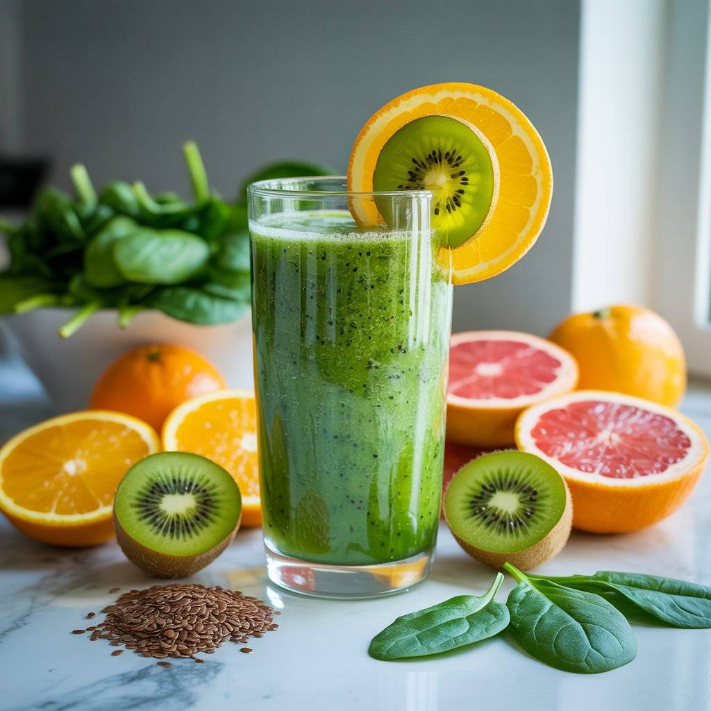 Vitamin C-rich fruits like orange, grapefruit, and kiwi not only energize but also support immunity. Blend with a handful of spinach, a spoon of flaxseed, and a splash of water or coconut milk for a refreshing, nutrient-packed drink.