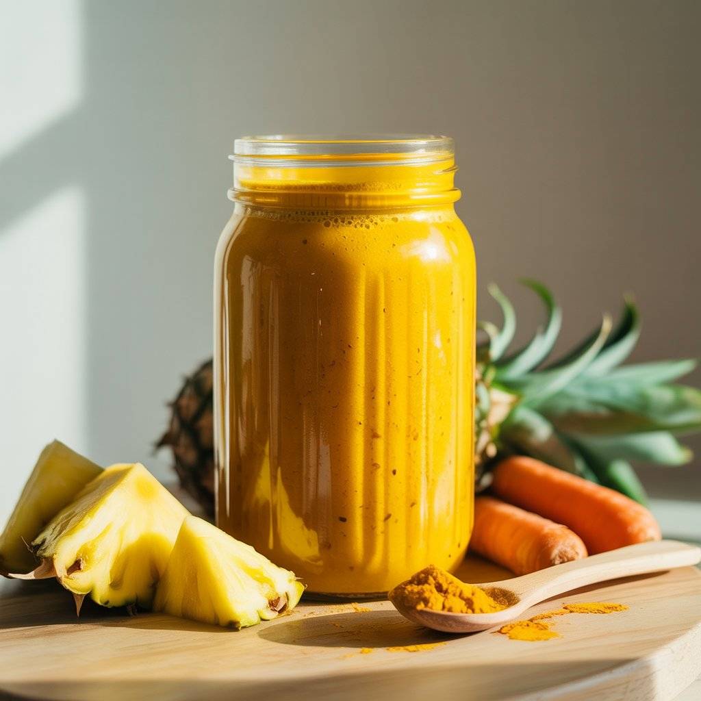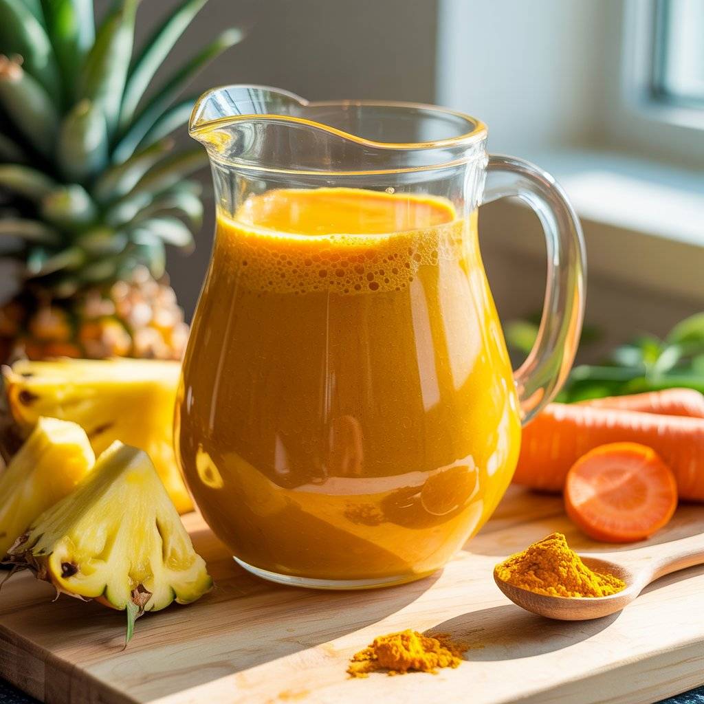 Pineapple, carrot, and a hint of turmeric create a vibrant, immunity-boosting drink. Add a teaspoon of coconut oil or flaxseed for healthy fats and a splash of orange juice for natural sweetness.