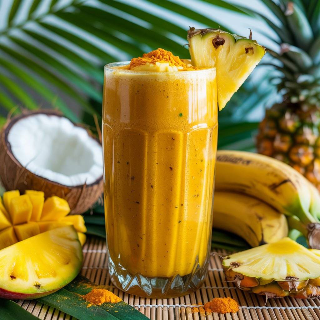Turmeric isn’t just for curries it’s a natural anti-inflammatory superstar. Blend pineapple, mango, and banana with coconut water and a pinch of turmeric for a tropical energy boost.