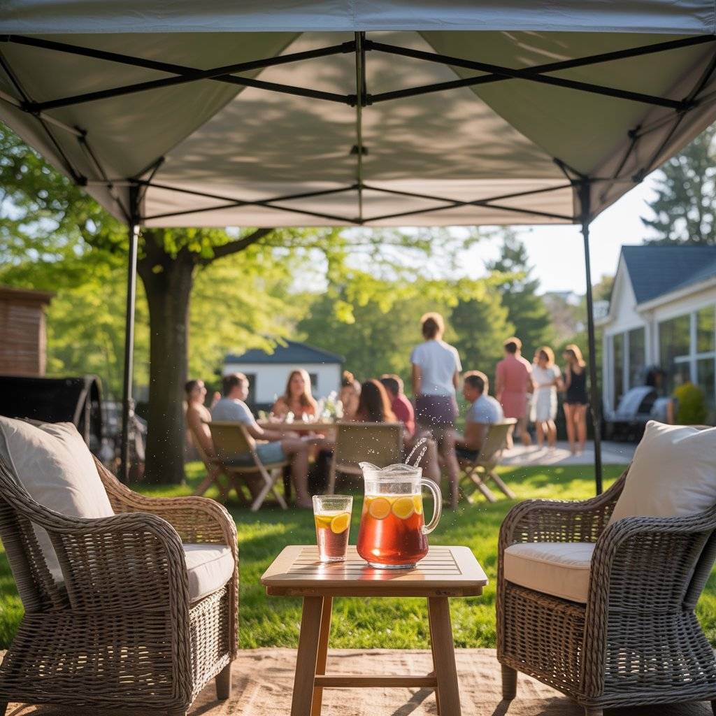 Place a couple of comfortable chairs and a small table in this area with a pitcher of water or iced tea. It gives guests a place to cool off, especially older relatives or folks with young kids. It also doubles as a spot for people who want a quieter conversation away from the main action. A little forethought on comfort goes a long way.