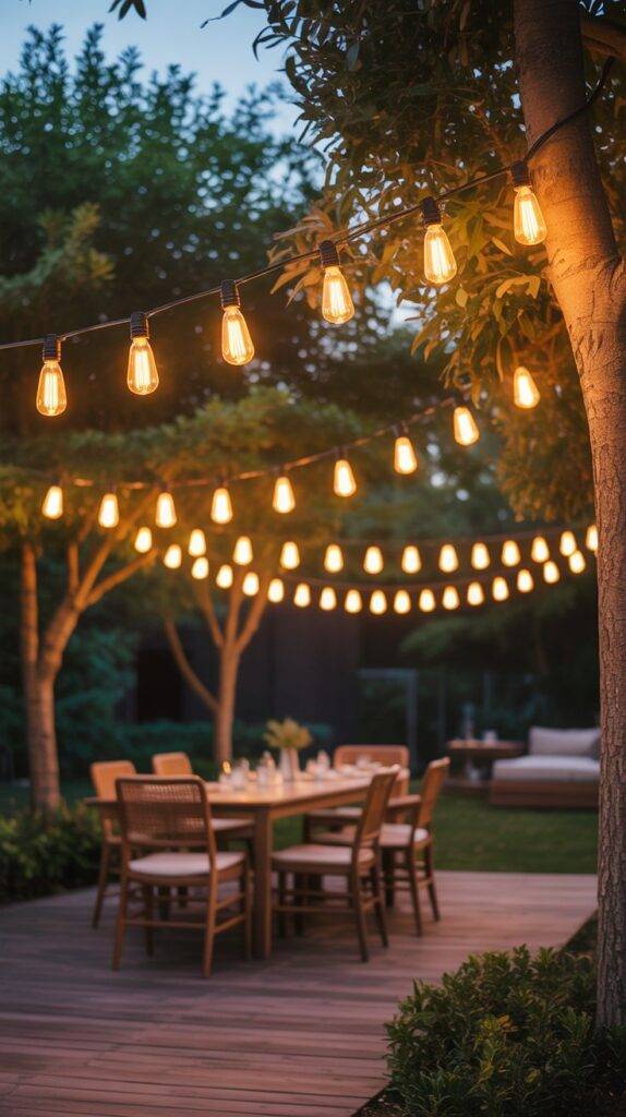 String lights are the easiest way to make your backyard feel magical. Once the sun starts going down, those warm little bulbs completely change the mood.