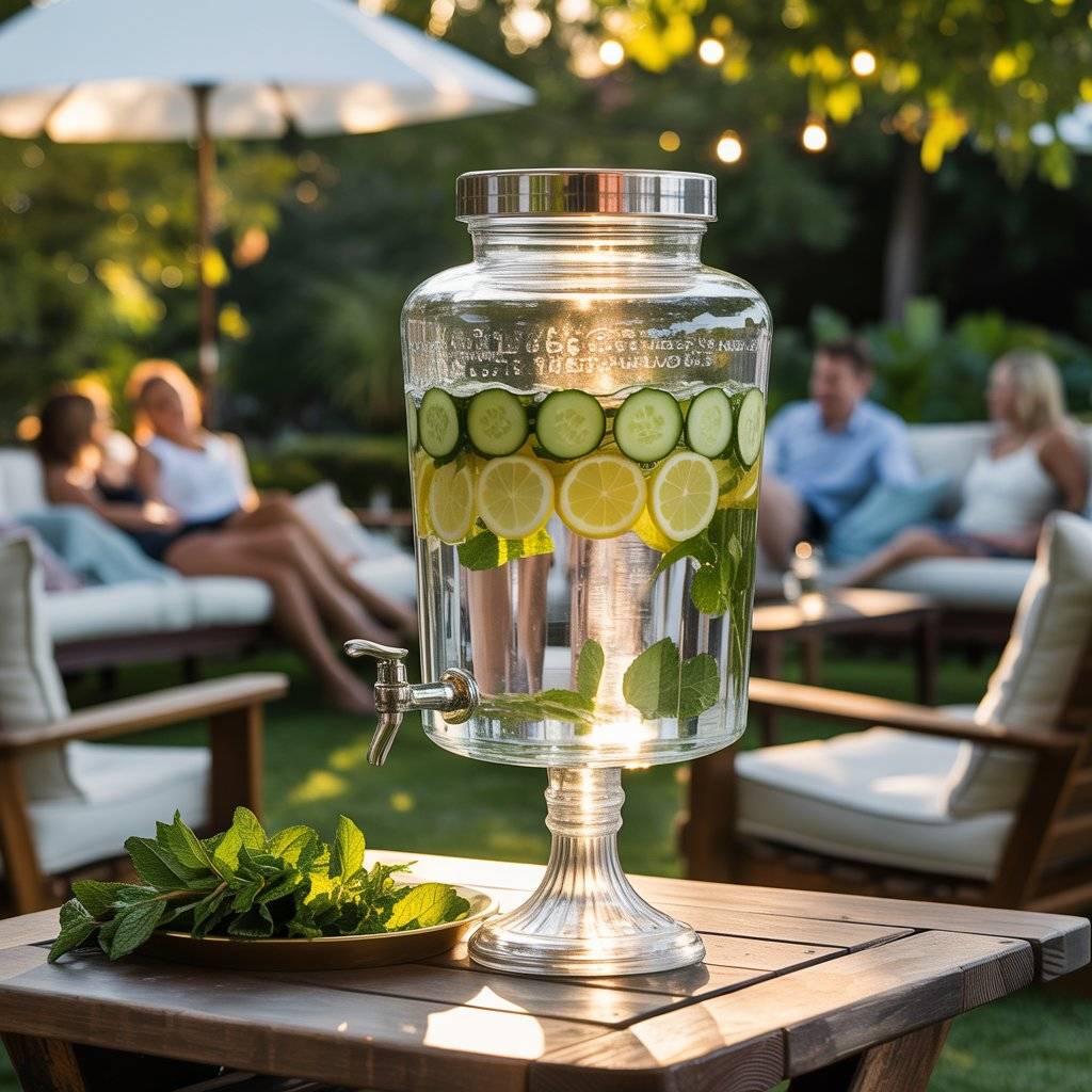 It’s a great option for kids, designated drivers, or anyone who wants to stay hydrated without the sugar. Place it near the food table so it’s easy to grab. The bright colors from the fruit also add to your table decor. It’s a simple, healthy touch that always gets compliments.