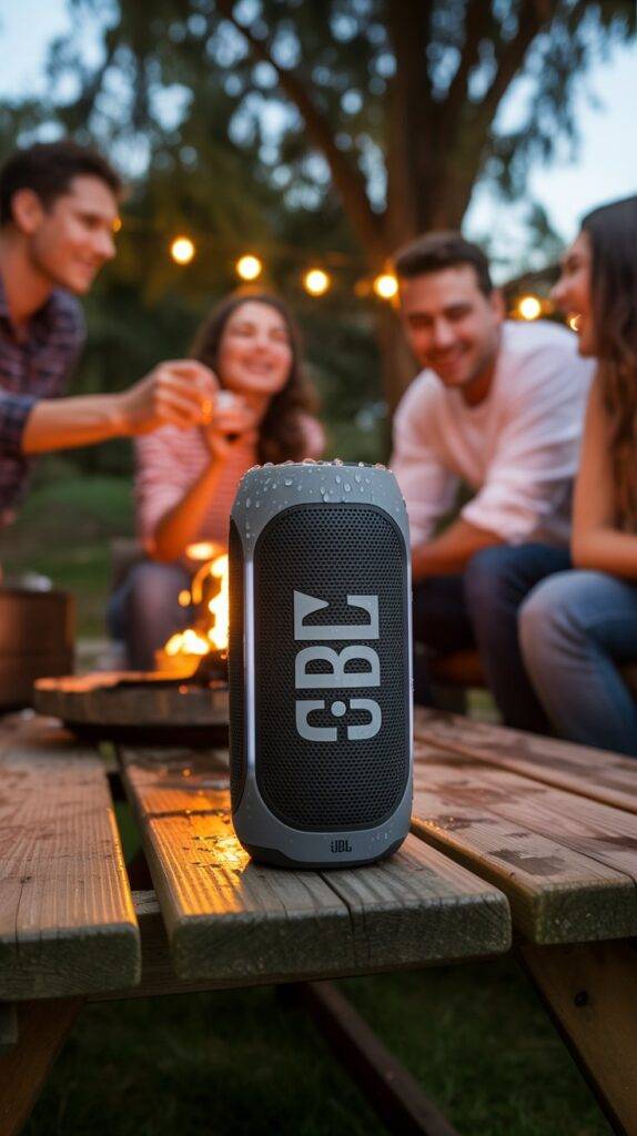 Battery life runs around 12 hours, so it’ll easily outlast your party. Set it on a table, hang it from a tree branch, or tuck it near your seating area you’ll get crisp sound without having to fiddle with wires or worry about an outlet.
