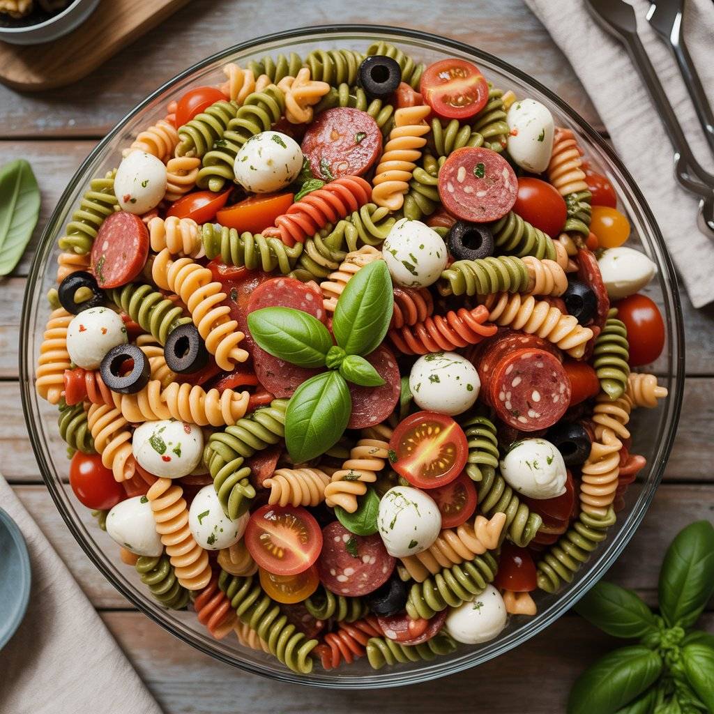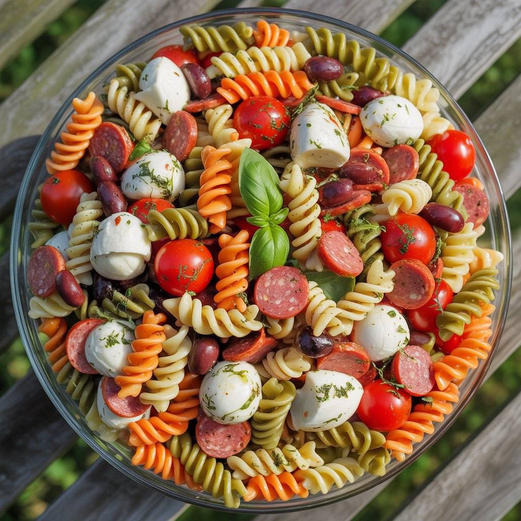 Toss it with cherry tomatoes, fresh mozzarella balls, sliced olives, pepperoni, and a simple Italian vinaigrette. Letting it chill overnight allows all those flavors to come together.