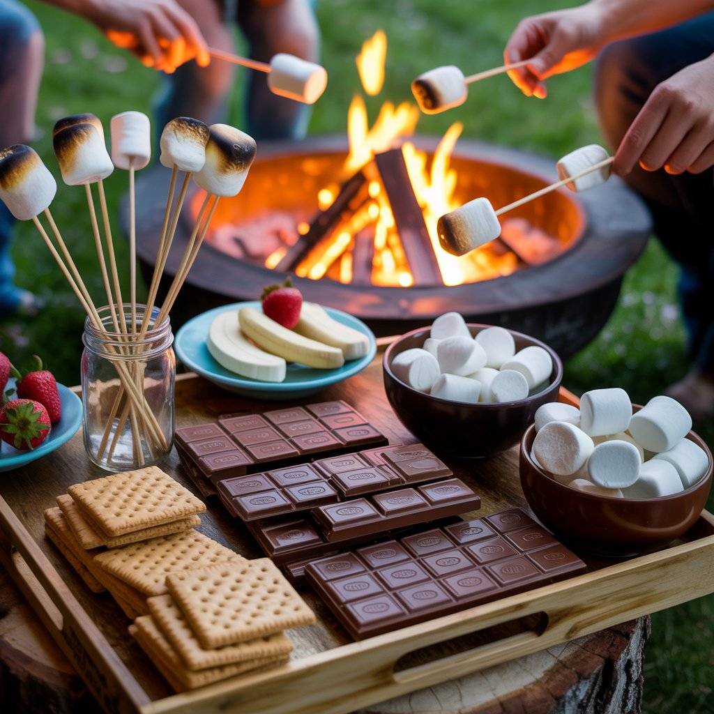 Set out a tray with classic honey graham crackers, a few types of chocolate bars (milk chocolate, dark chocolate, and maybe a peanut butter cup option), and an assortment of marshmallows regular, jumbo, and even flavored ones like strawberry or toasted coconut.