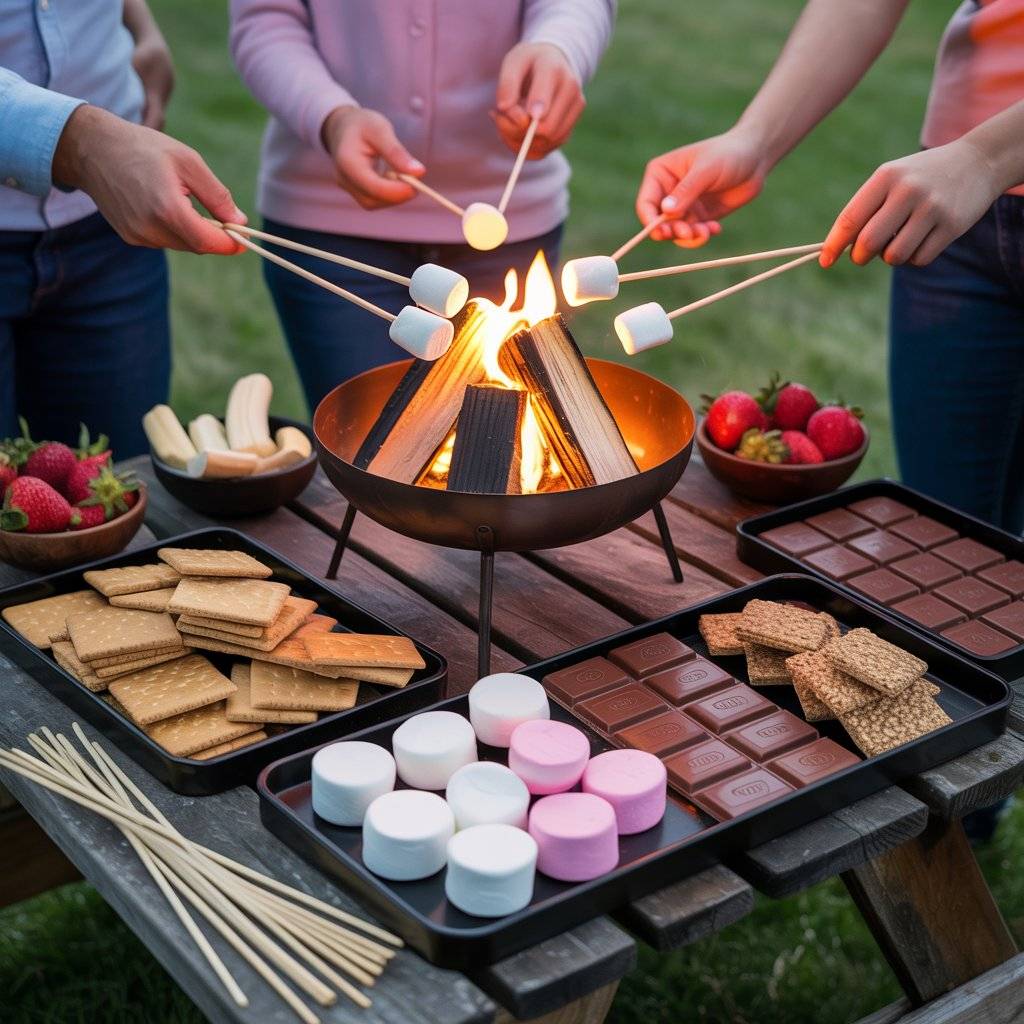 Provide long skewers or roasting sticks so everyone can toast their own marshmallow to their preferred level of doneness. For a spring twist, add thin slices of banana or fresh strawberries. It’s messy, it’s fun, and it keeps people hanging out long after the burgers are gone.