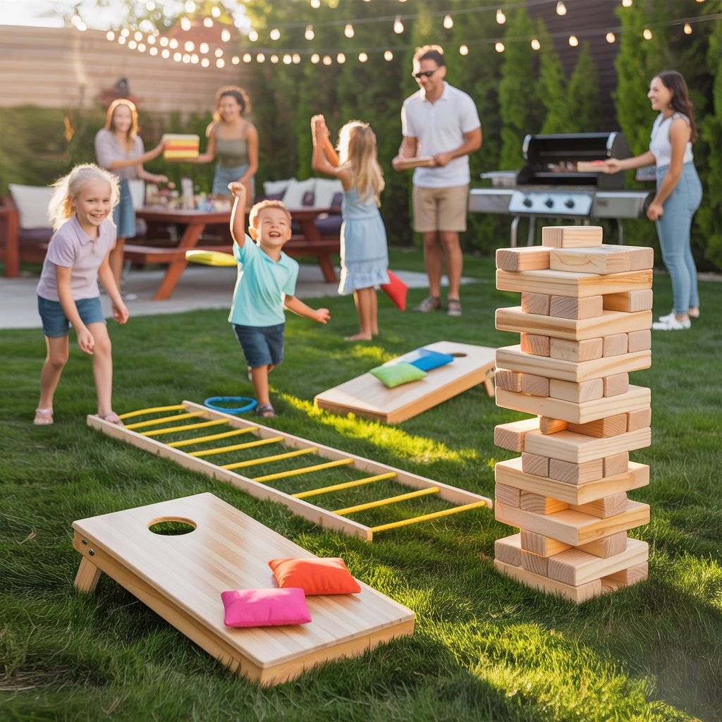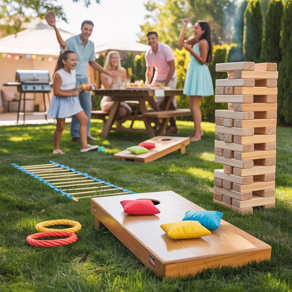 Give your guests something to do besides just sitting and eating. Classic lawn games like cornhole, ladder toss, or giant Jenga get people moving, laughing, and interacting. Set them up in a flat area of the yard away from the food and grill.