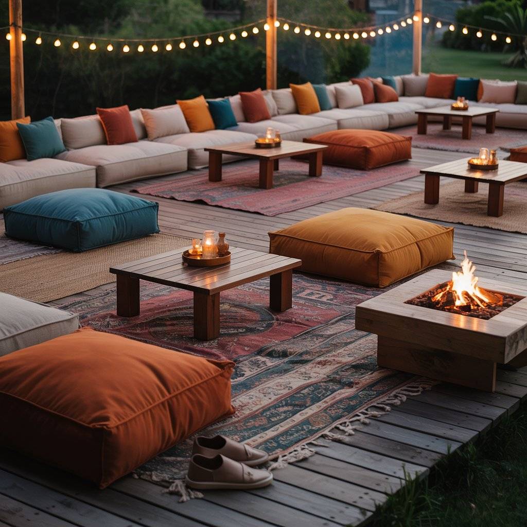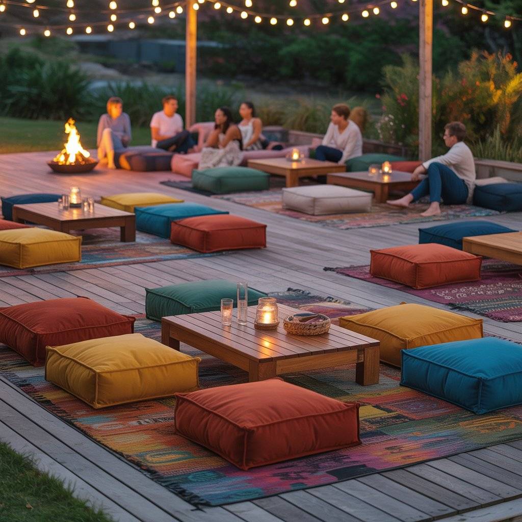 If you have a deck or a grassy area, ditch the formal patio furniture for a more relaxed vibe. Scatter large outdoor floor cushions, poufs, and low coffee tables around. This creates a cozy, lounge-like atmosphere that encourages people to kick off their shoes and stay awhile.