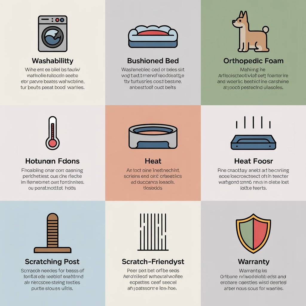 - Compare comfort: bolsters, orthopedic foam, scratch-friendly sides, and optional heat.