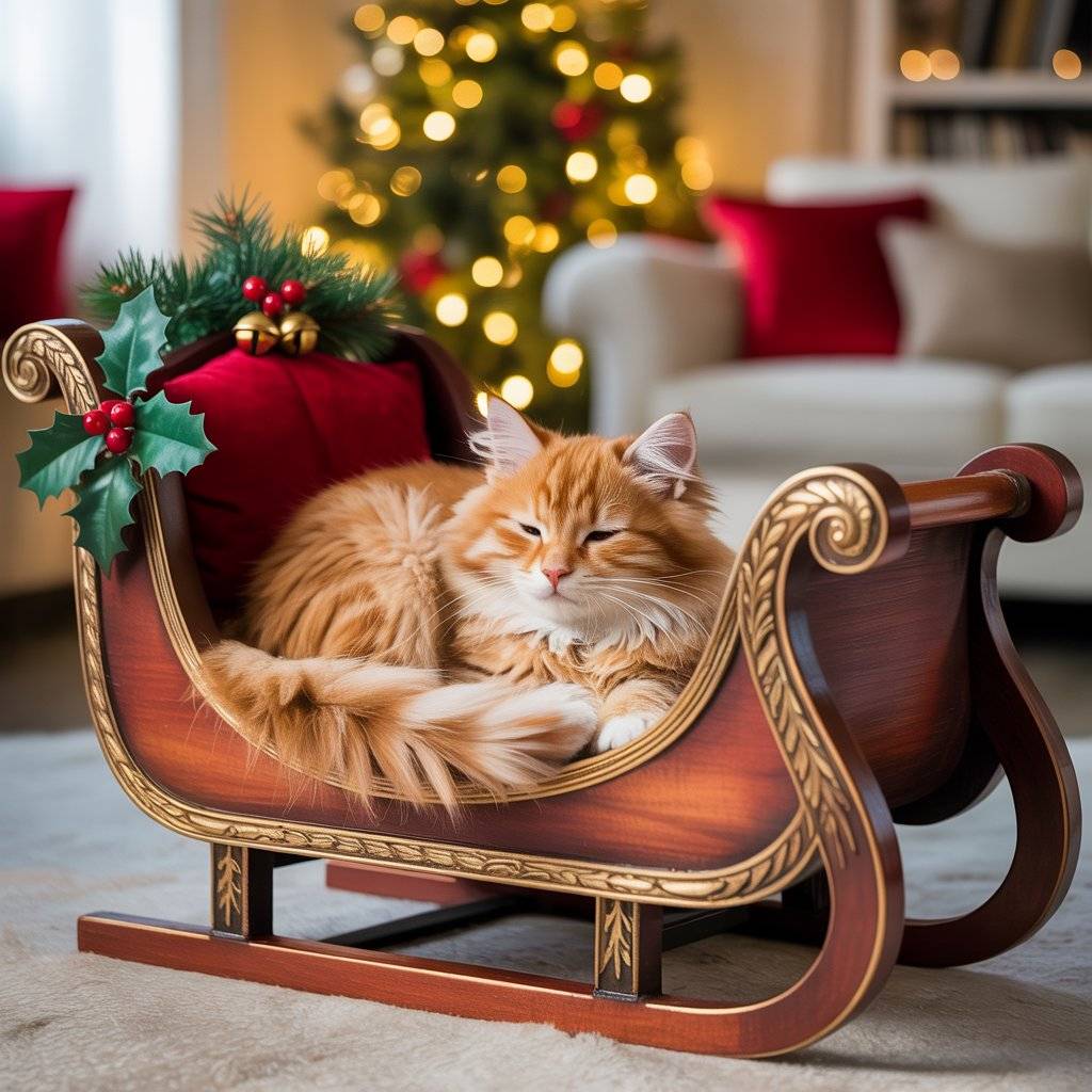 Cozy Meets Whimsy: Why Cats Love Christmas Sleigh Beds