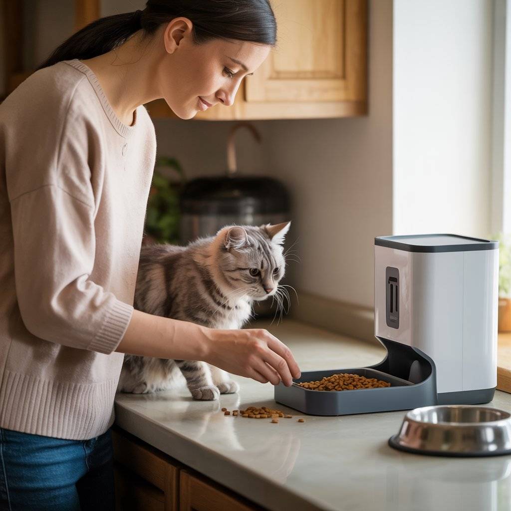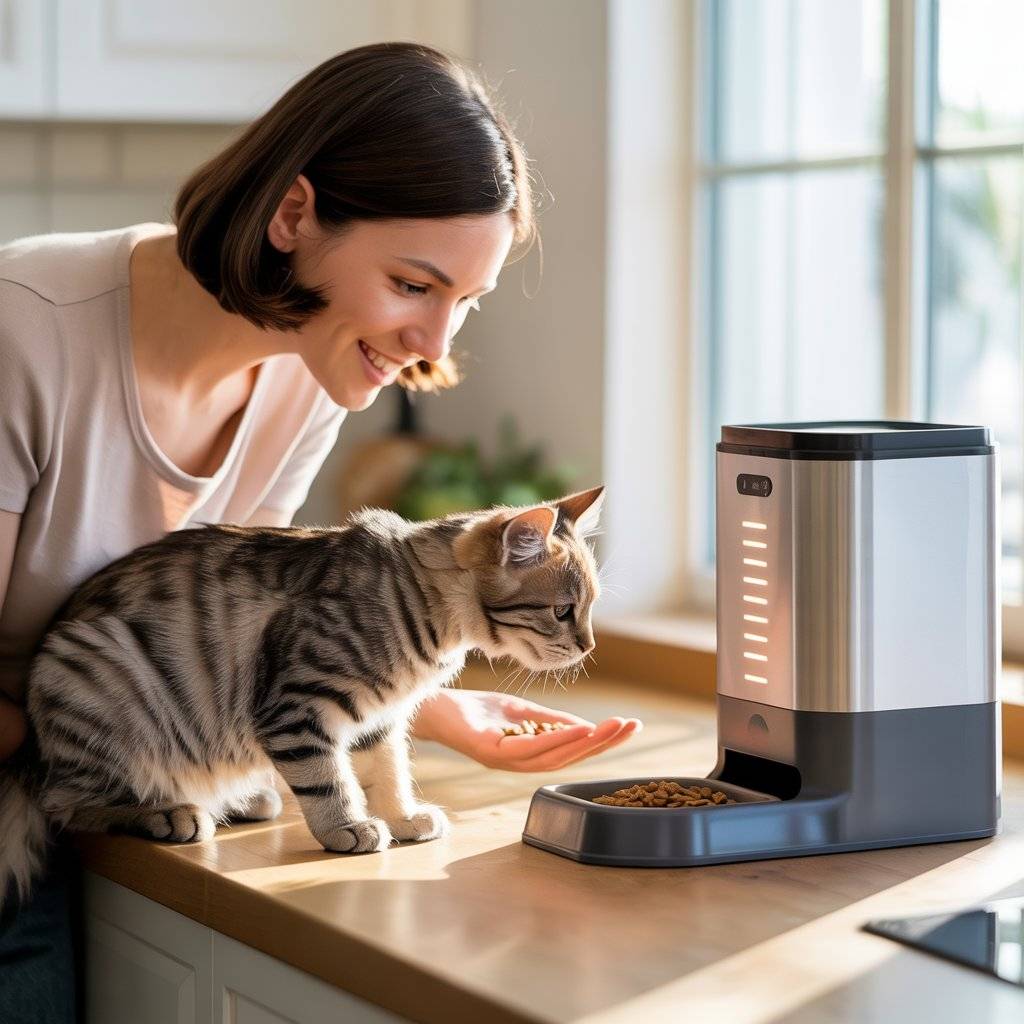 Smart feeders work best with a short warmup. Start with manual drops, then add small timed feeds. Keep the same food, pair with praise, and stand by during the first sessions.