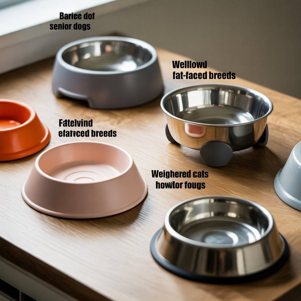 - Brachycephalic breeds: use shallow or slightly tilted bowls so short muzzles reach food without strain.