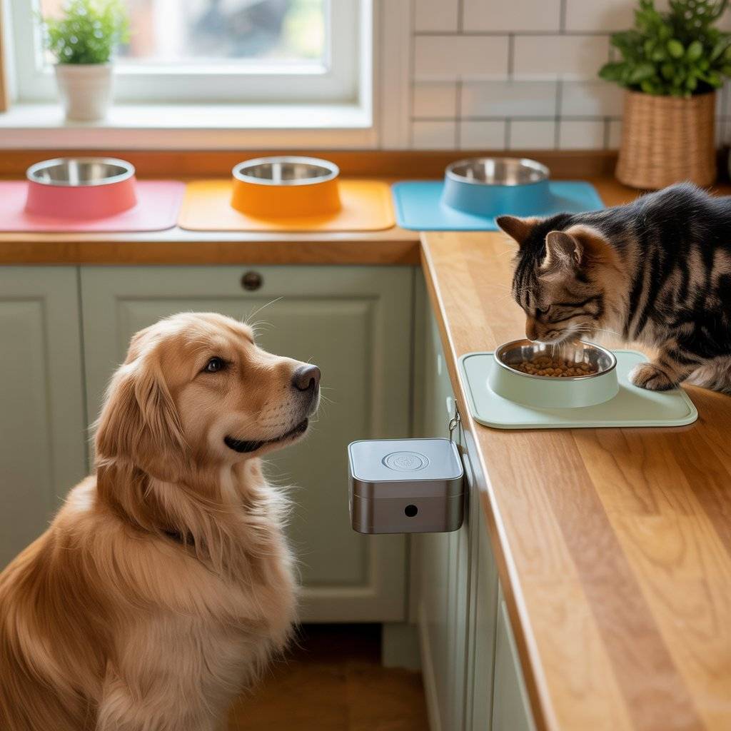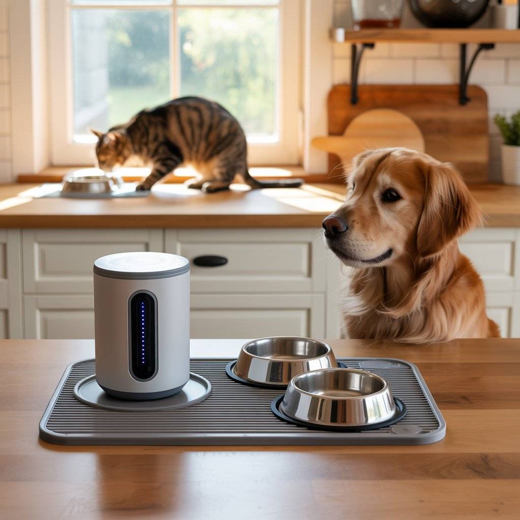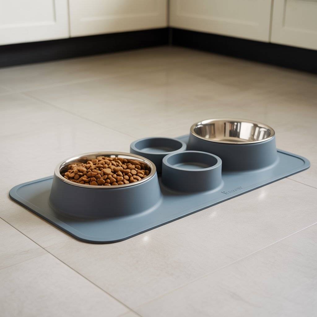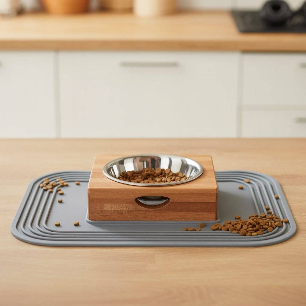 Spill-proof edges and food-grade silicone placemats keep gravy and kibble off the floor. Smart feeders should use quiet motors so anxious pets keep eating. Stable gear matters most for excited eaters and big dogs with strong pushes.