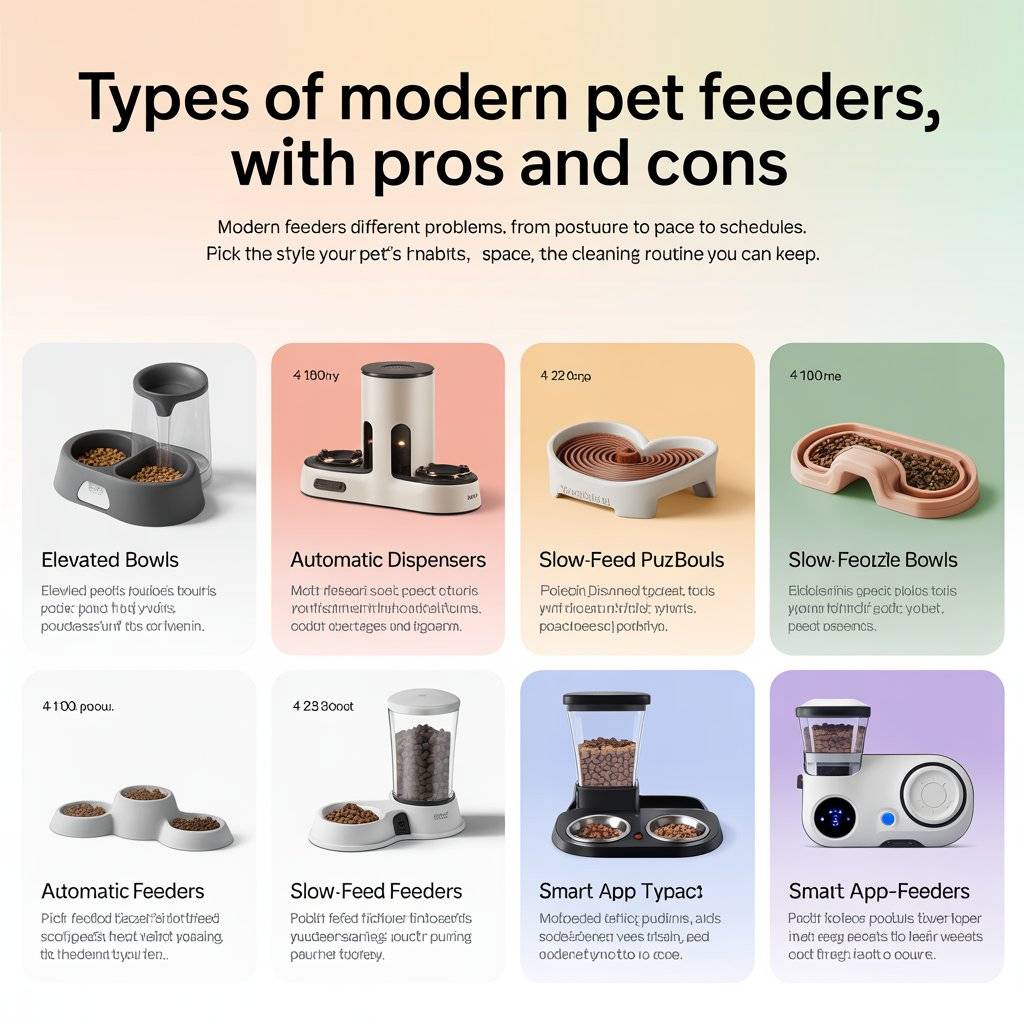 Modern feeders solve different problems, from posture to pace to schedules. Pick the style that fits your pet’s habits, your space, and the cleaning routine you can keep.
